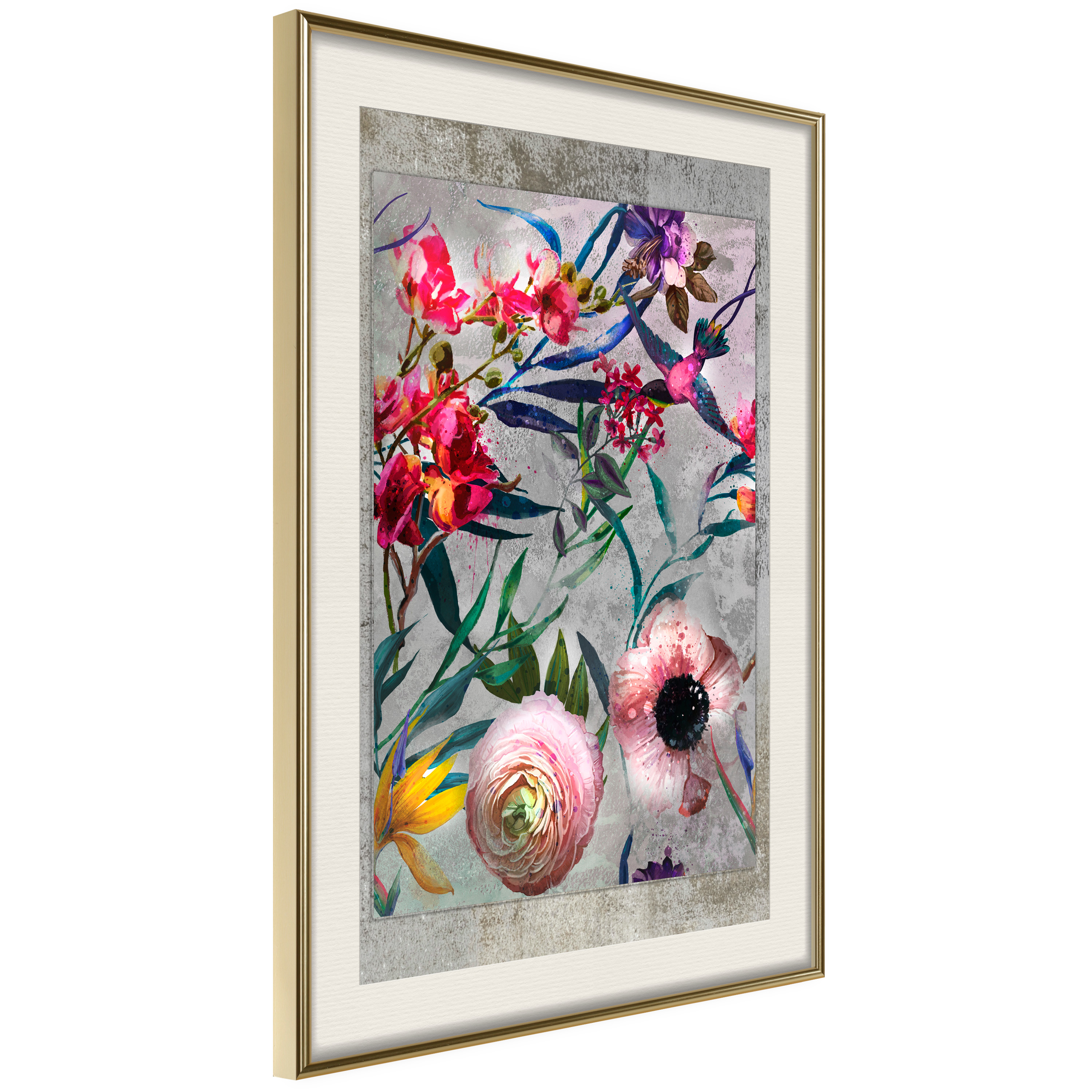 Passepartouten i écru betonar färgern på affischen och skapar en extra kontrast mellan grafiken, ramen och väggen. Dessutom ger den ramen ett svagt tredimensionellt intryck och fungerar även som ett skyddslager som ytterligare skyddar afischen. Affischen är säkrad med akrylglas och en hänganordning finns på ramens baksida.