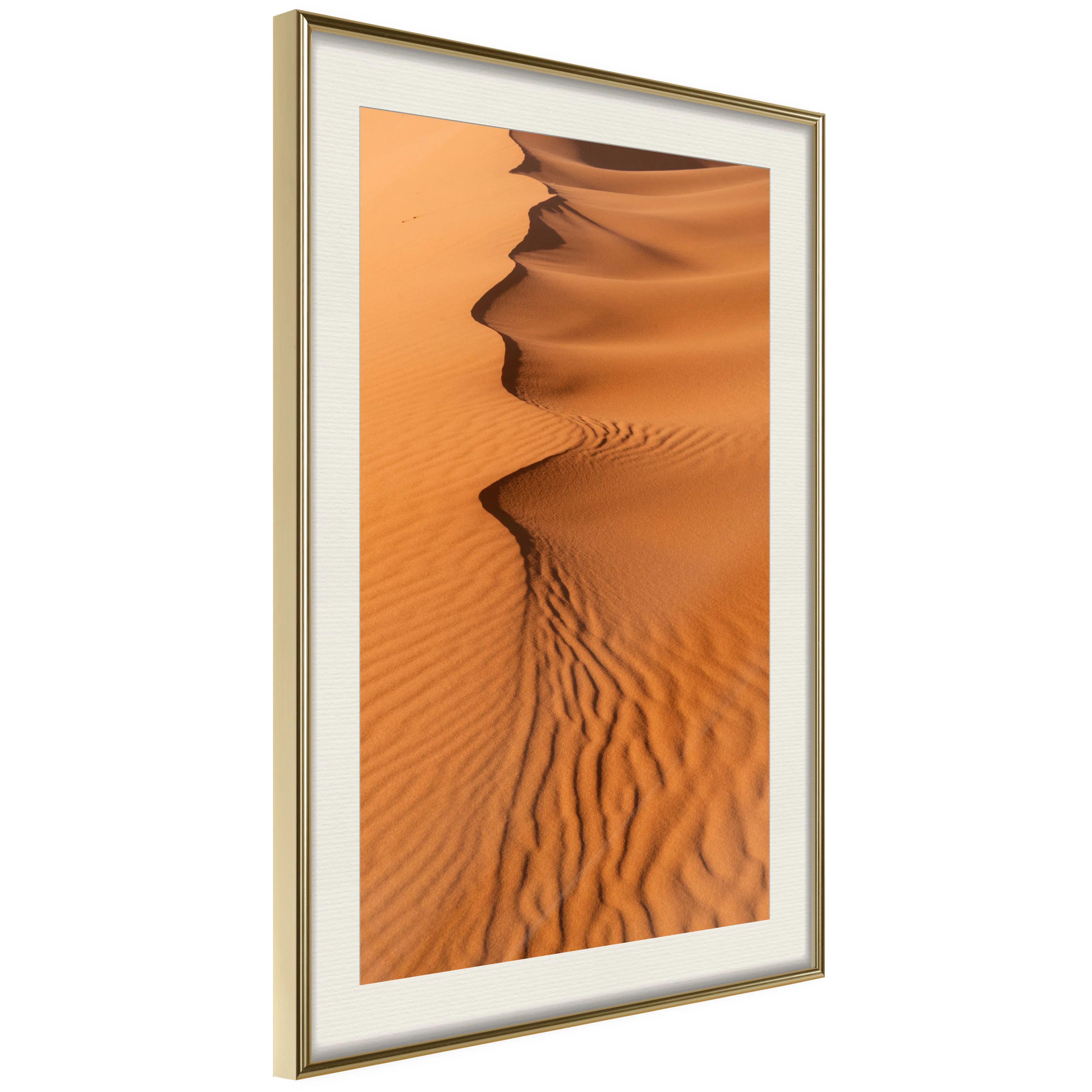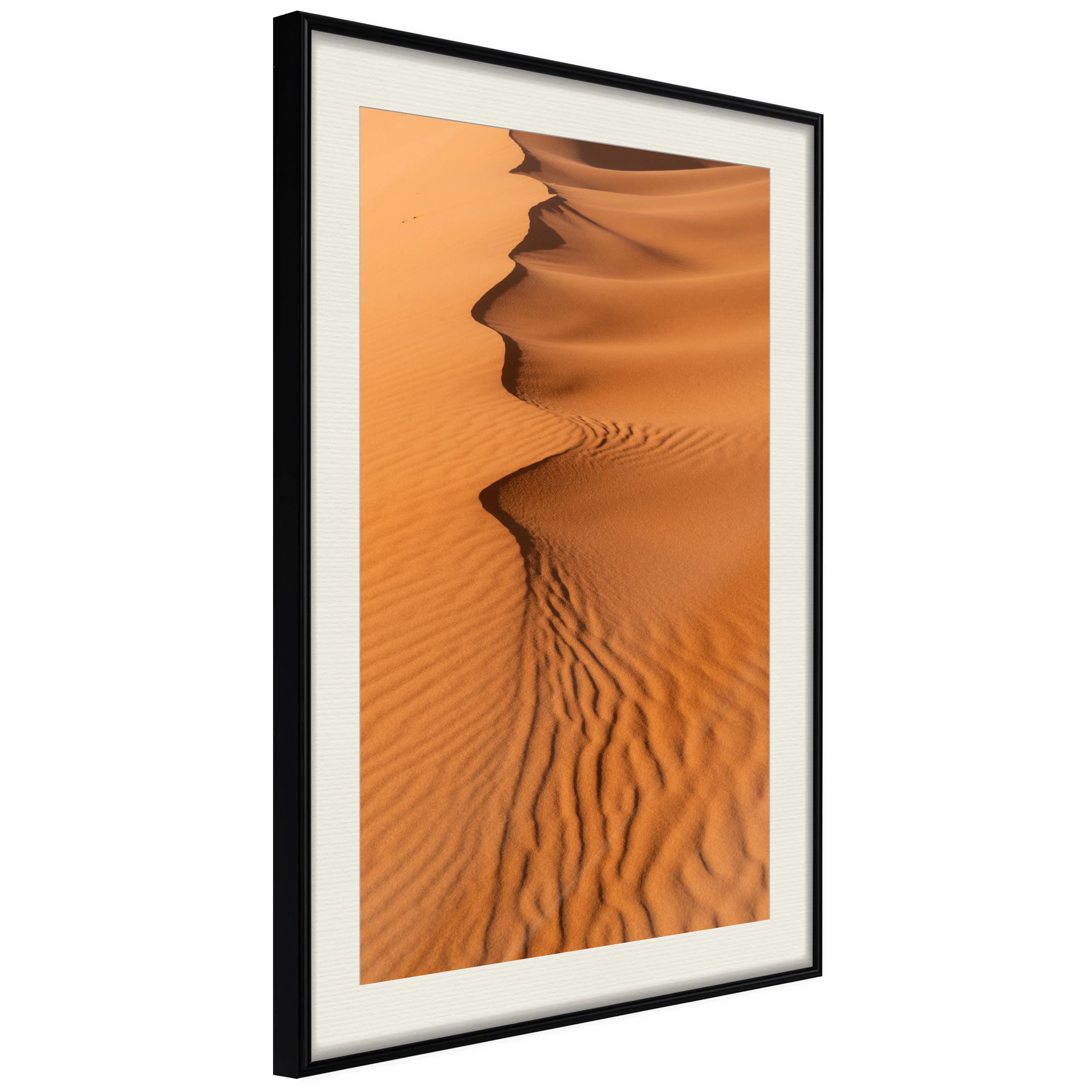 Passepartouten i écru betonar färgern på affischen och skapar en extra kontrast mellan grafiken, ramen och väggen. Dessutom ger den ramen ett svagt tredimensionellt intryck och fungerar även som ett skyddslager som ytterligare skyddar afischen. Affischen är säkrad med akrylglas och en hänganordning finns på ramens baksida.