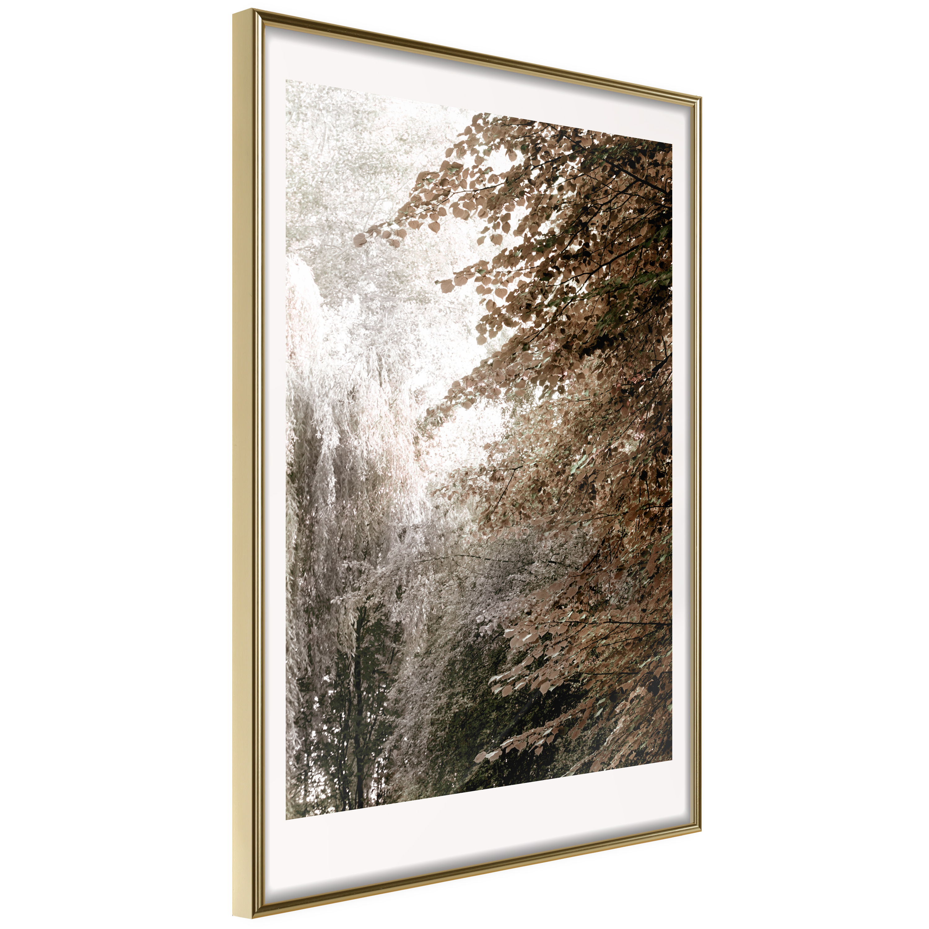 Passepartouten i écru betonar färgern på affischen och skapar en extra kontrast mellan grafiken, ramen och väggen. Dessutom ger den ramen ett svagt tredimensionellt intryck och fungerar även som ett skyddslager som ytterligare skyddar afischen. Affischen är säkrad med akrylglas och en hänganordning finns på ramens baksida.