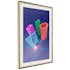 Affischen är inramad i en minimalistisk, lätt ram som gör den mer synlig mot väggen. Affischen är säkrad med akrylglas och en hänganordning finns på ramens baksida.