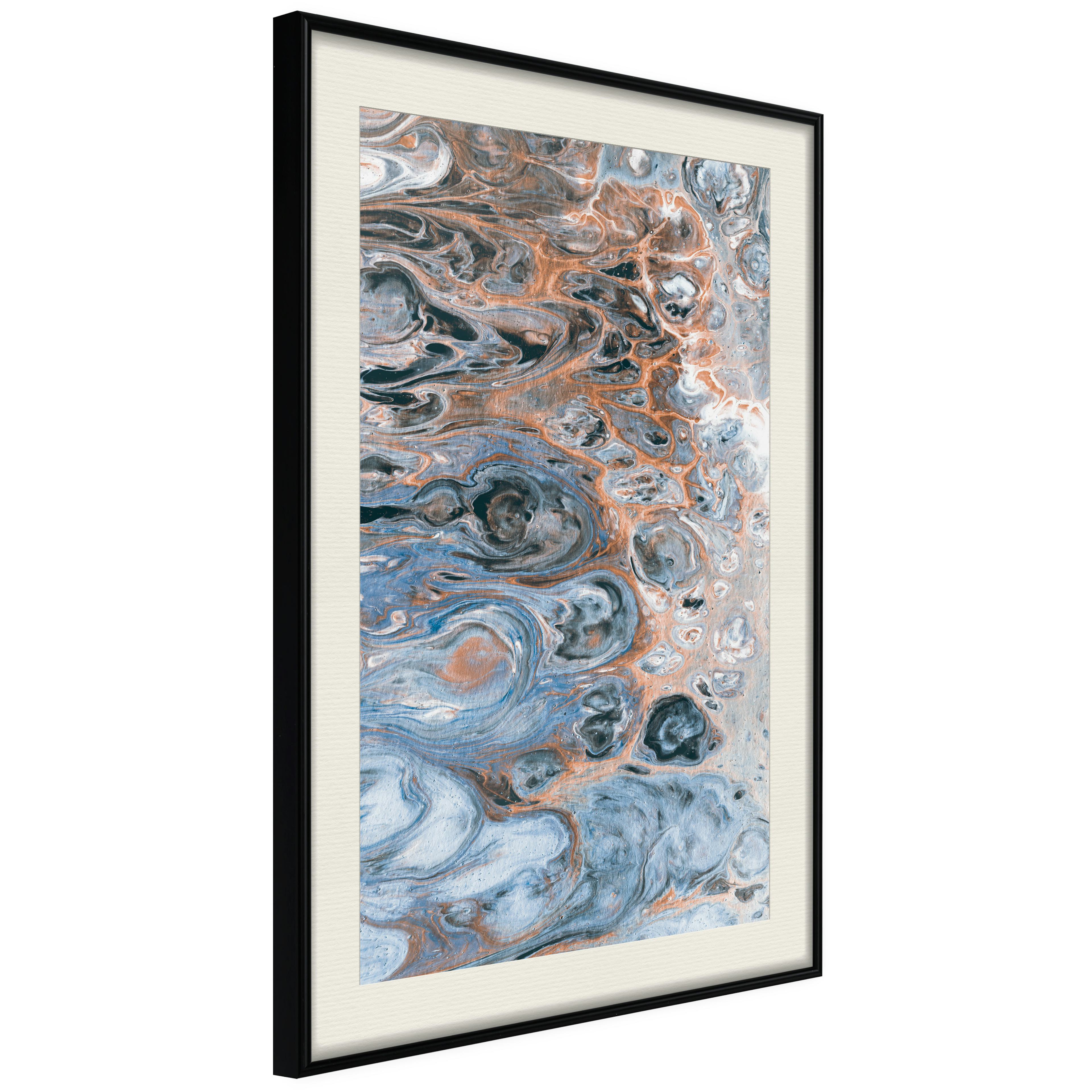 Passepartouten i écru betonar färgern på affischen och skapar en extra kontrast mellan grafiken, ramen och väggen. Dessutom ger den ramen ett svagt tredimensionellt intryck och fungerar även som ett skyddslager som ytterligare skyddar afischen. Affischen är säkrad med akrylglas och en hänganordning finns på ramens baksida.