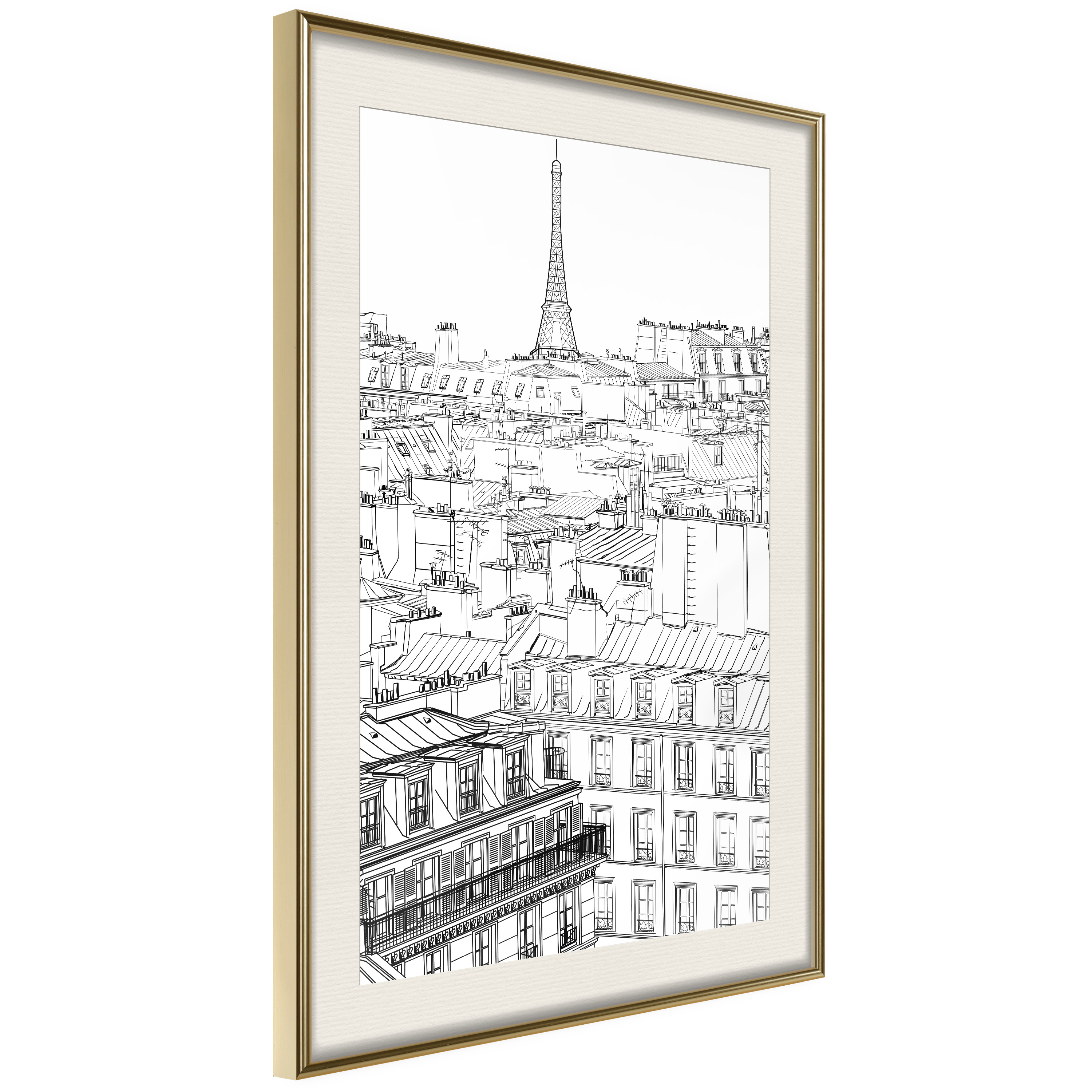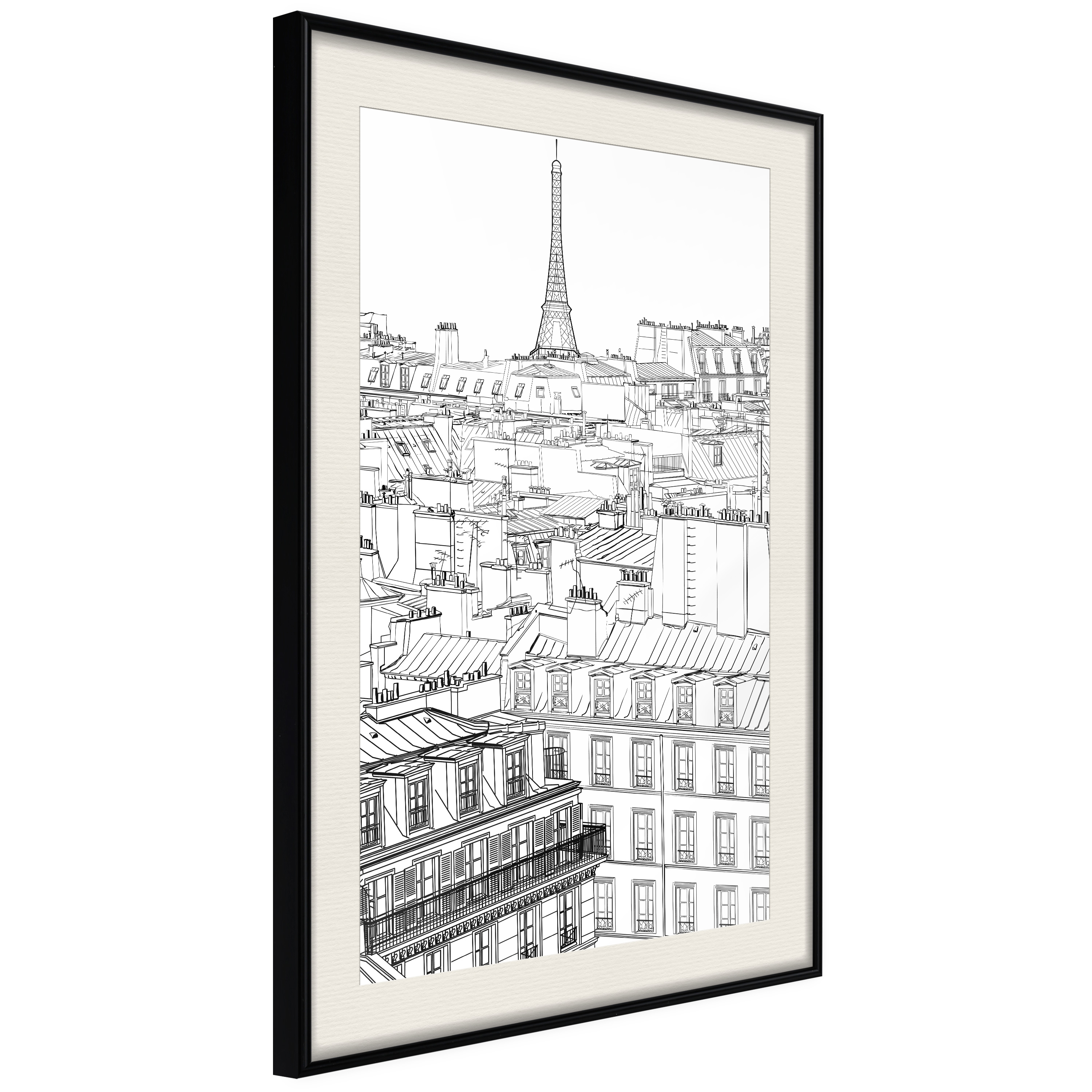 Affischen är inramad i en minimalistisk, lätt ram som gör den mer synlig mot väggen. Affischen är säkrad med akrylglas och en hänganordning finns på ramens baksida.