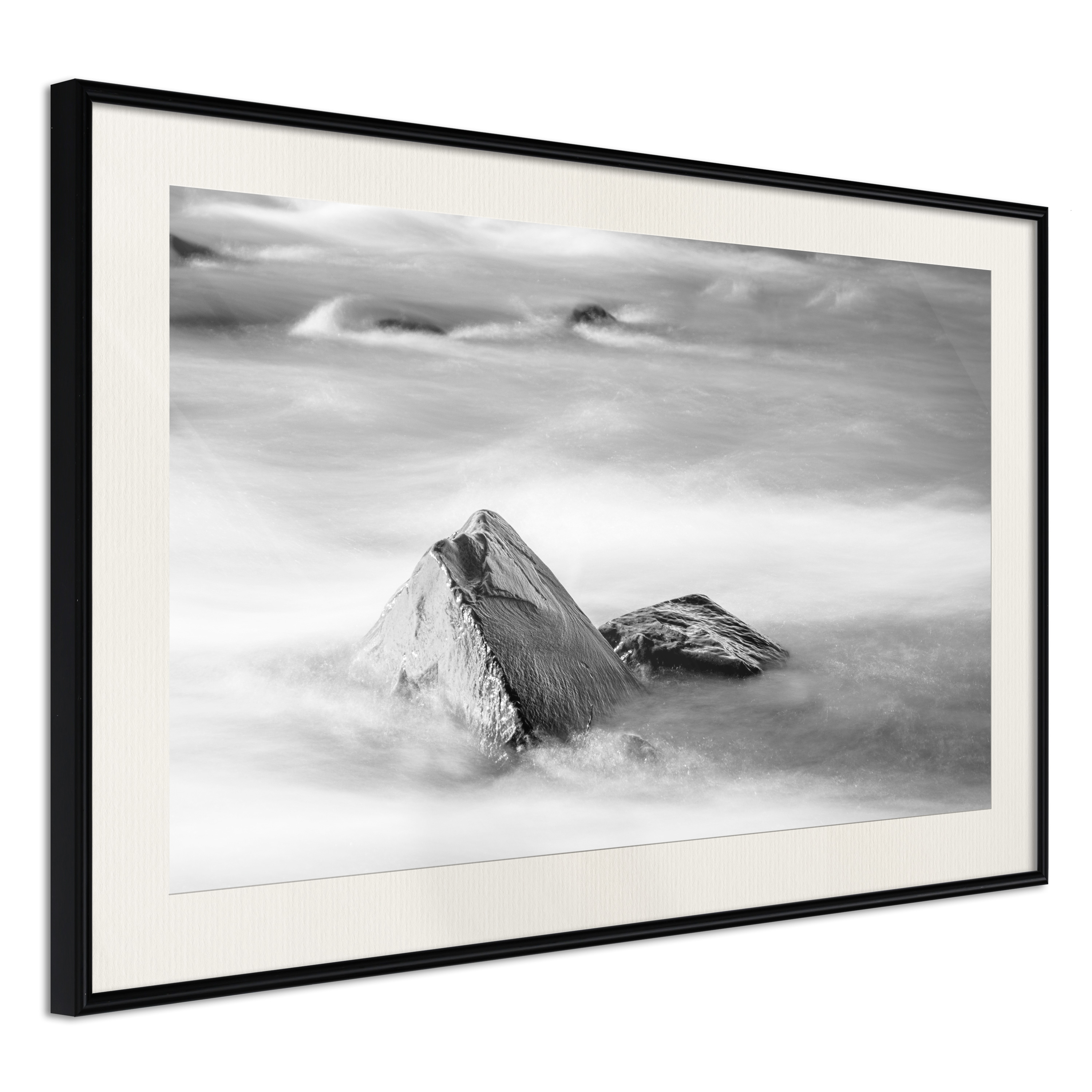 Passepartouten i écru betonar färgern på affischen och skapar en extra kontrast mellan grafiken, ramen och väggen. Dessutom ger den ramen ett svagt tredimensionellt intryck och fungerar även som ett skyddslager som ytterligare skyddar afischen. Affischen är säkrad med akrylglas och en hänganordning finns på ramens baksida.