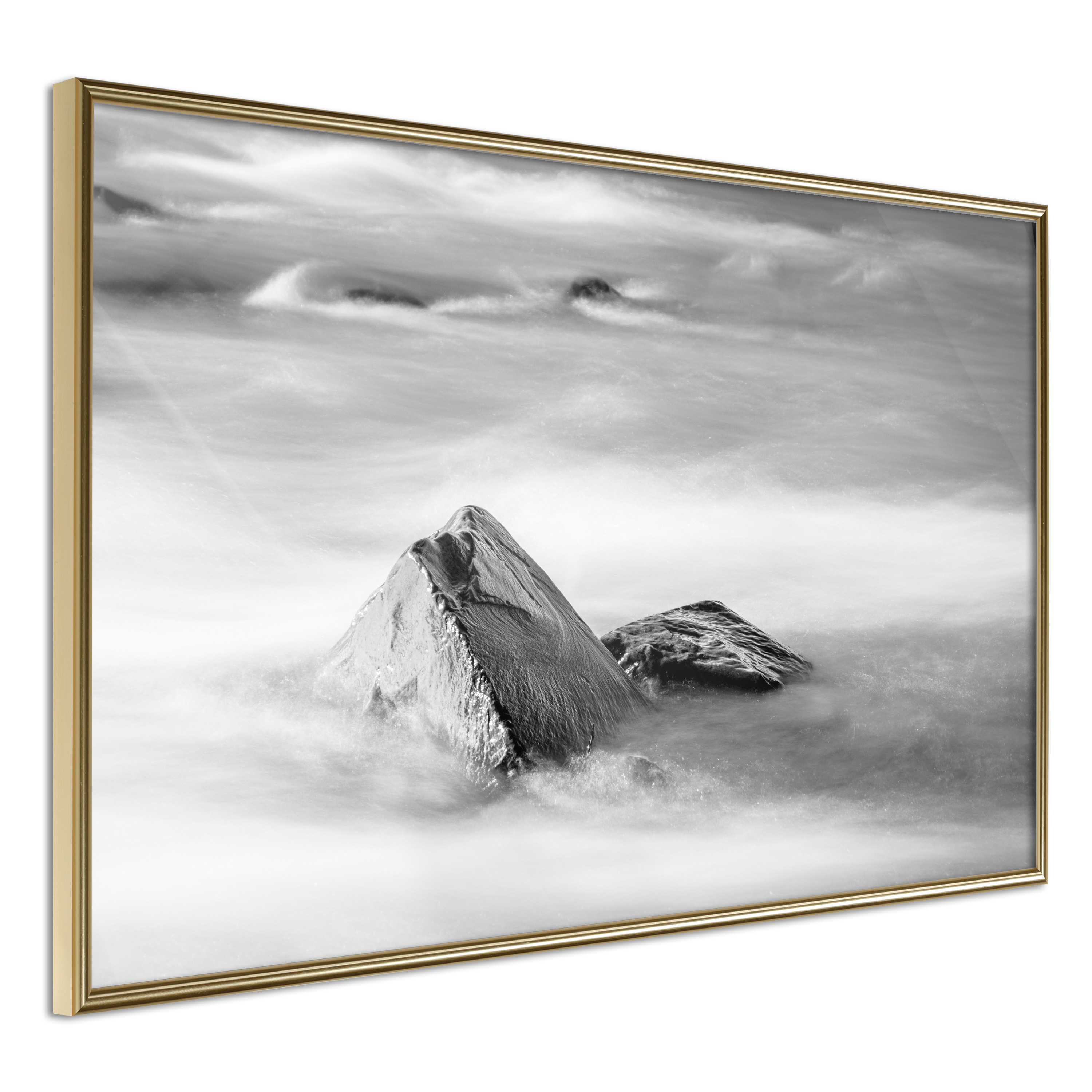 Affischen är inramad i en minimalistisk, lätt ram som gör den mer synlig mot väggen. Affischen är säkrad med akrylglas och en hänganordning finns på ramens baksida.