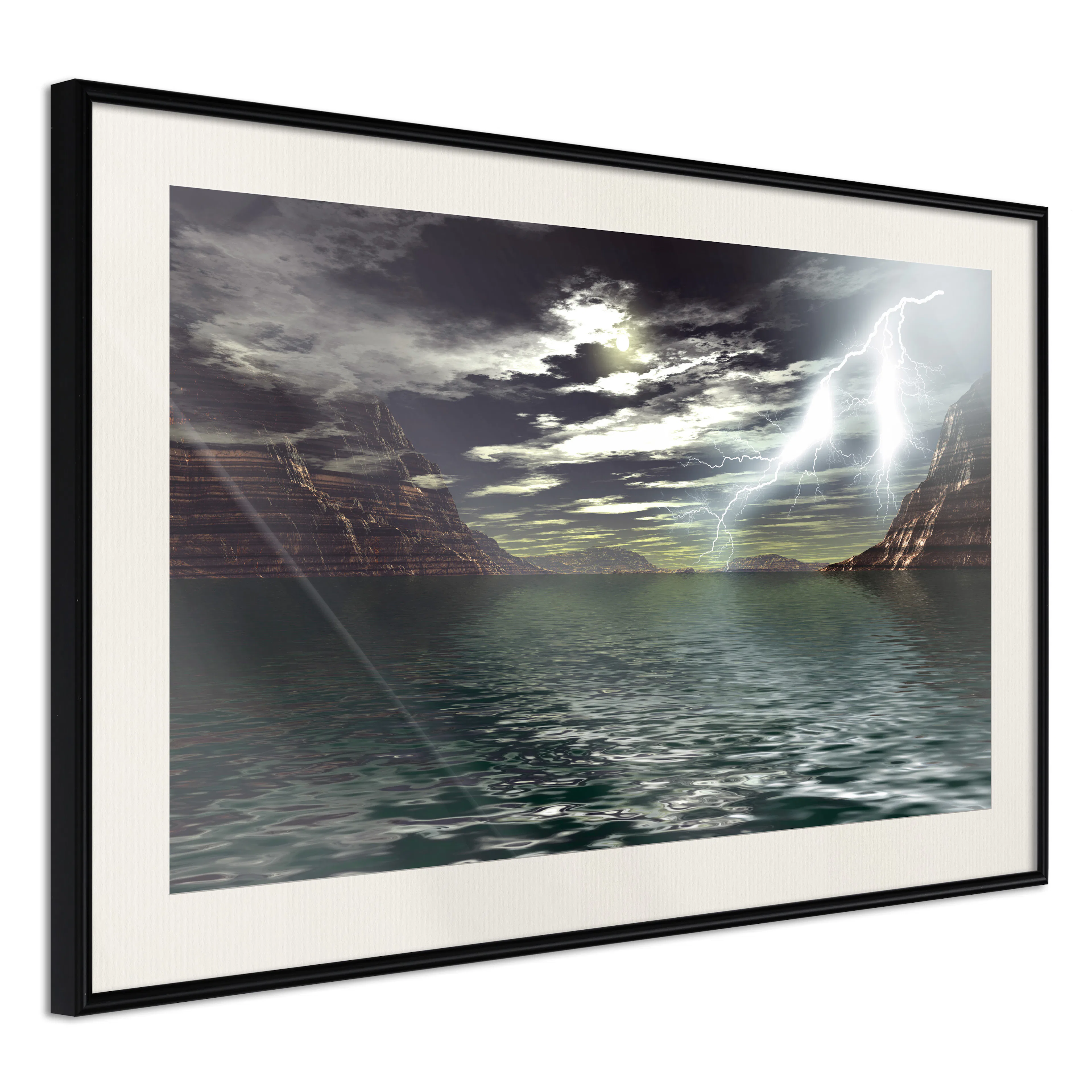 Poster Artgeist Affisch Storm on the LakeGuld ram med passepartout, 30x20 cm