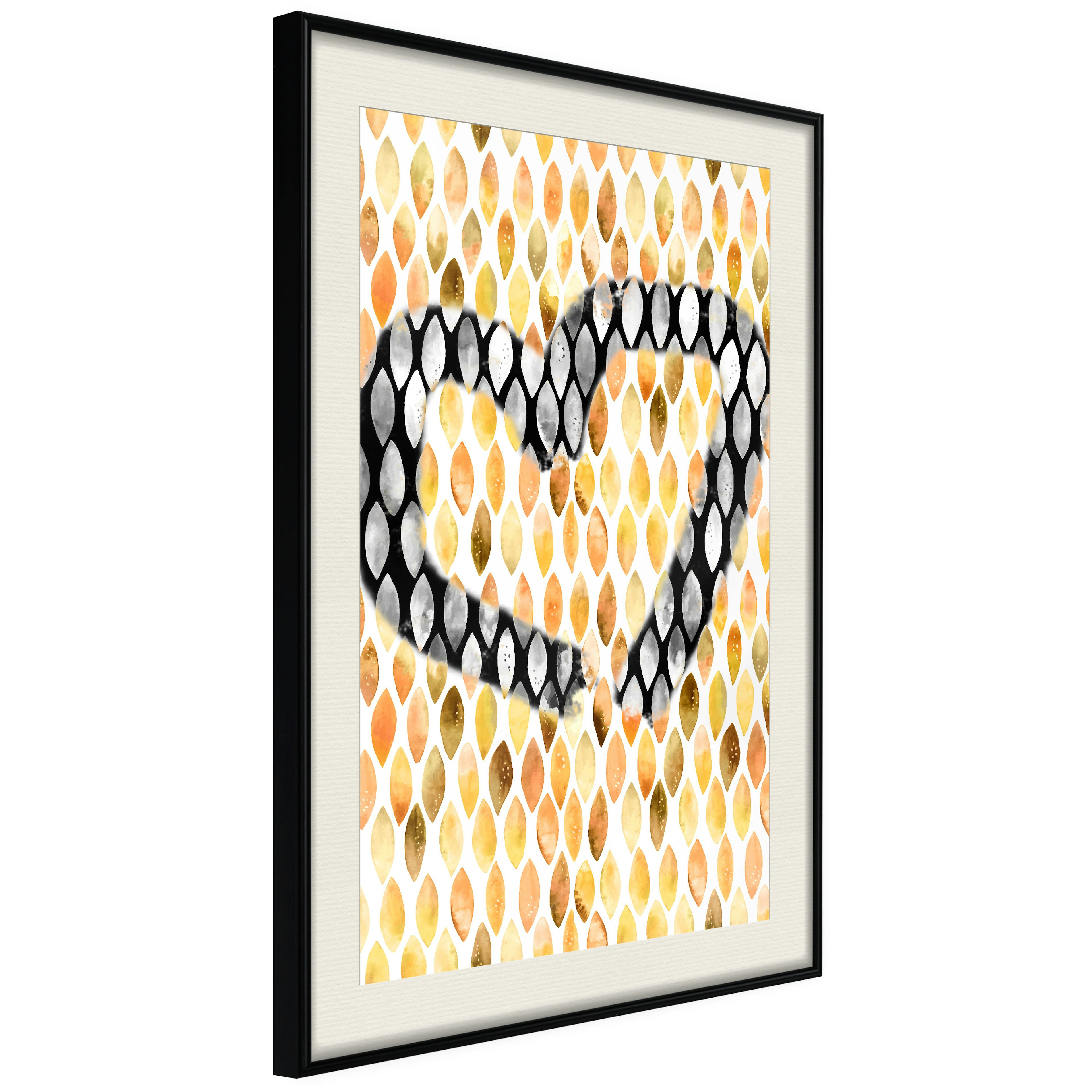 Passepartouten i écru betonar färgern på affischen och skapar en extra kontrast mellan grafiken, ramen och väggen. Dessutom ger den ramen ett svagt tredimensionellt intryck och fungerar även som ett skyddslager som ytterligare skyddar afischen. Affischen är säkrad med akrylglas och en hänganordning finns på ramens baksida.