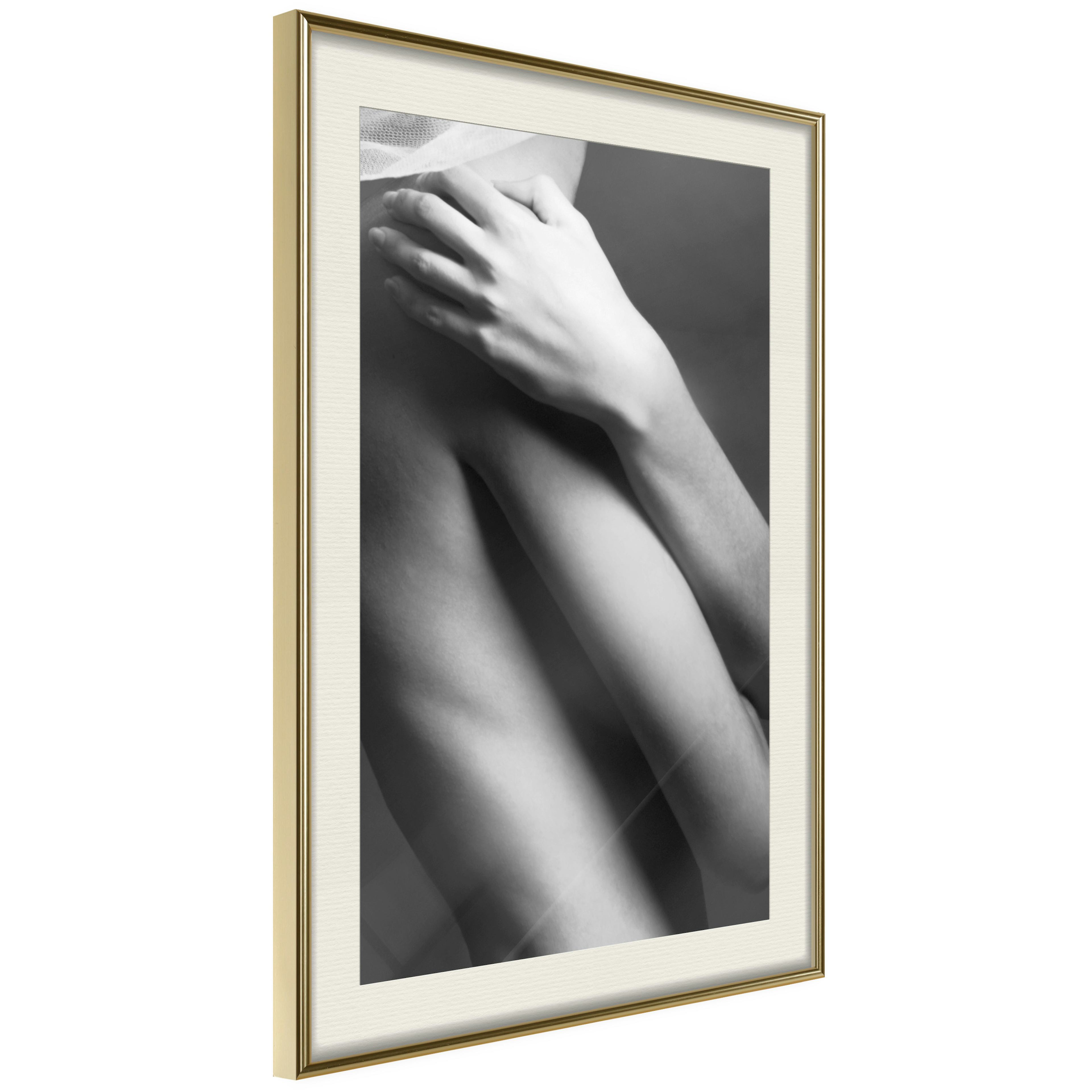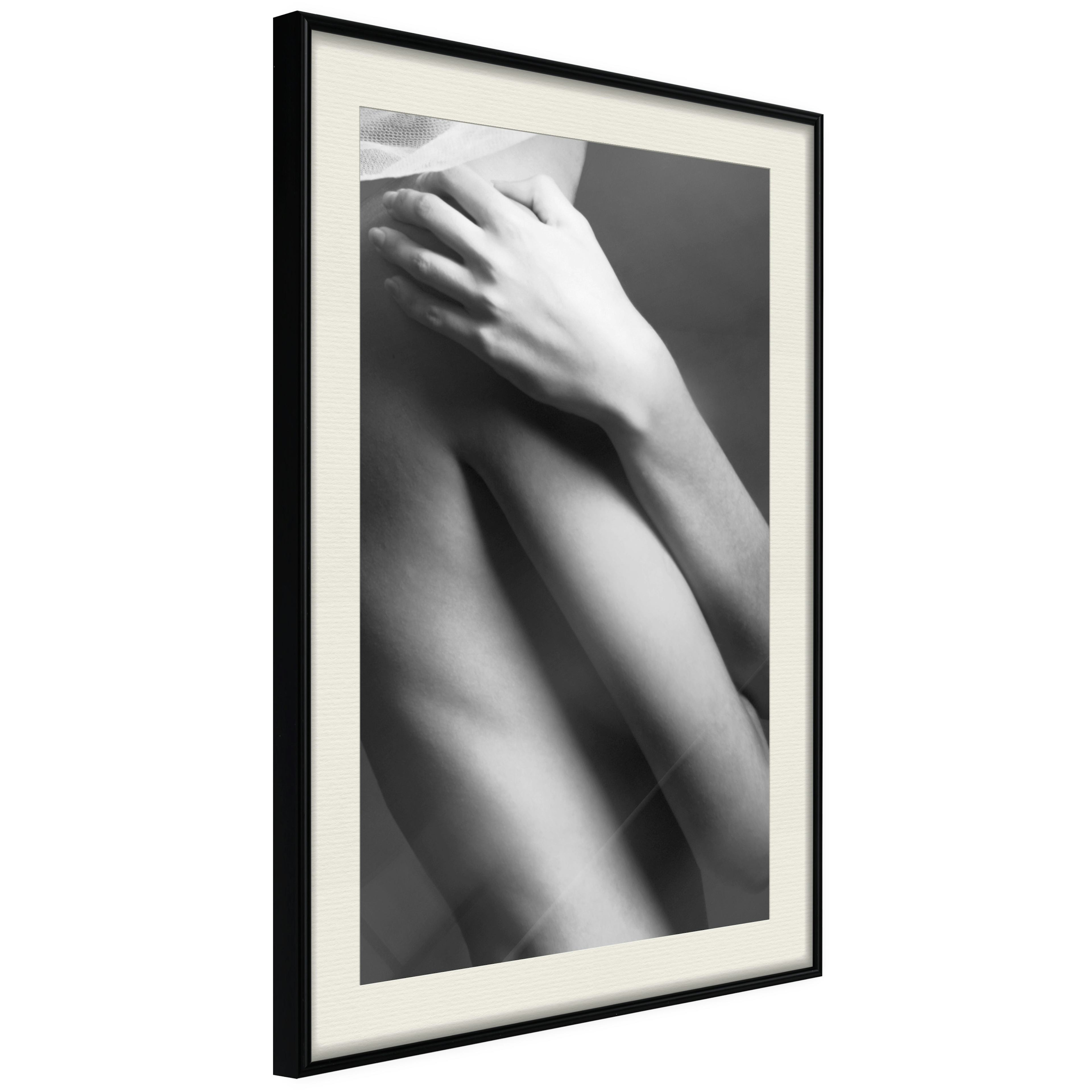 Passepartouten i écru betonar färgern på affischen och skapar en extra kontrast mellan grafiken, ramen och väggen. Dessutom ger den ramen ett svagt tredimensionellt intryck och fungerar även som ett skyddslager som ytterligare skyddar afischen. Affischen är säkrad med akrylglas och en hänganordning finns på ramens baksida.