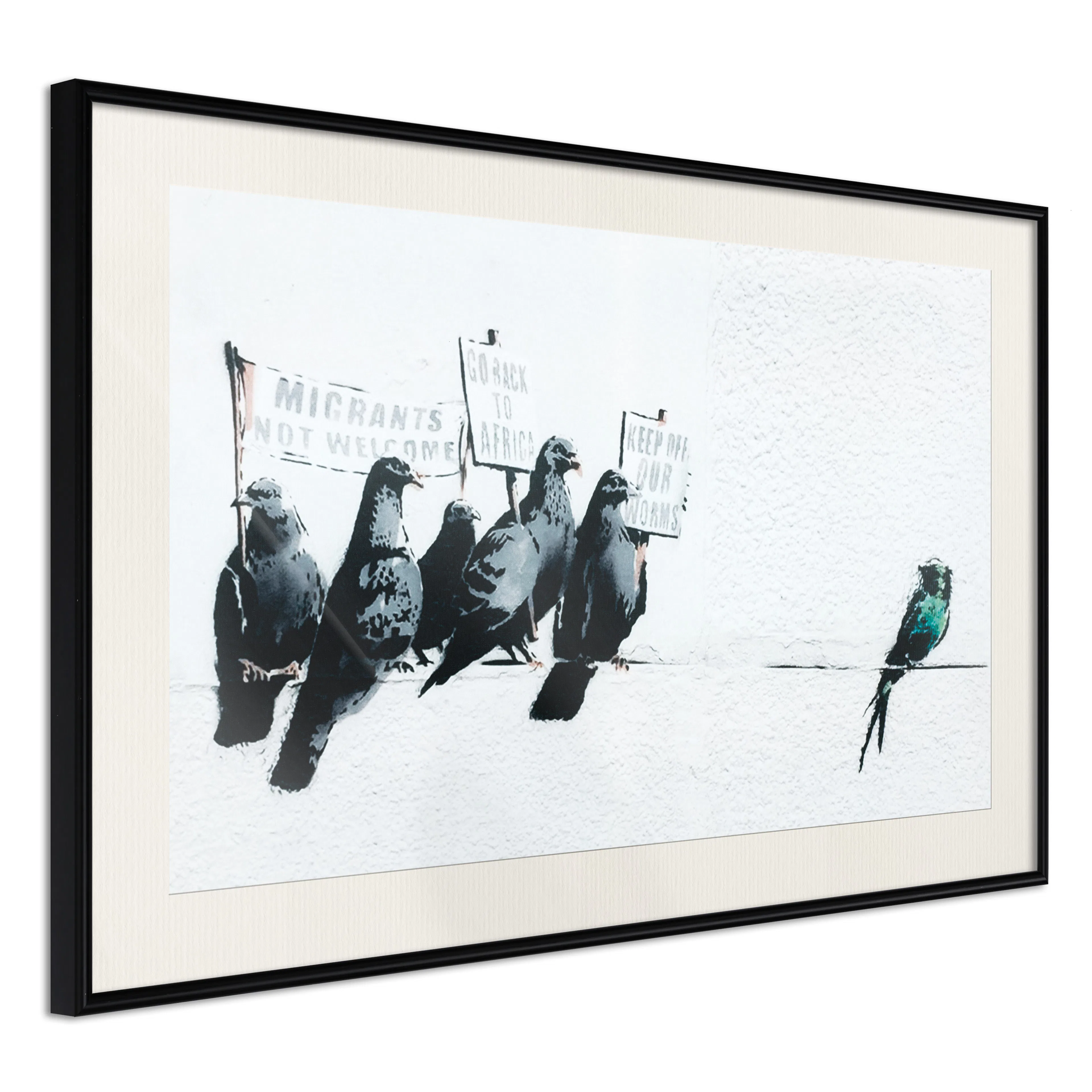 Poster Artgeist Affisch Xenophobic PigeonsSvart ram, 45x30 cm