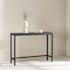 Ett modernt avlastningsbord med metallunderrede och bordsskiva i MDF med trä- eller betonglook. Perfekt att placera under en spegel i hallen, vardagsrummet eller sovrummet för ett snyggt och praktiskt blickfång.