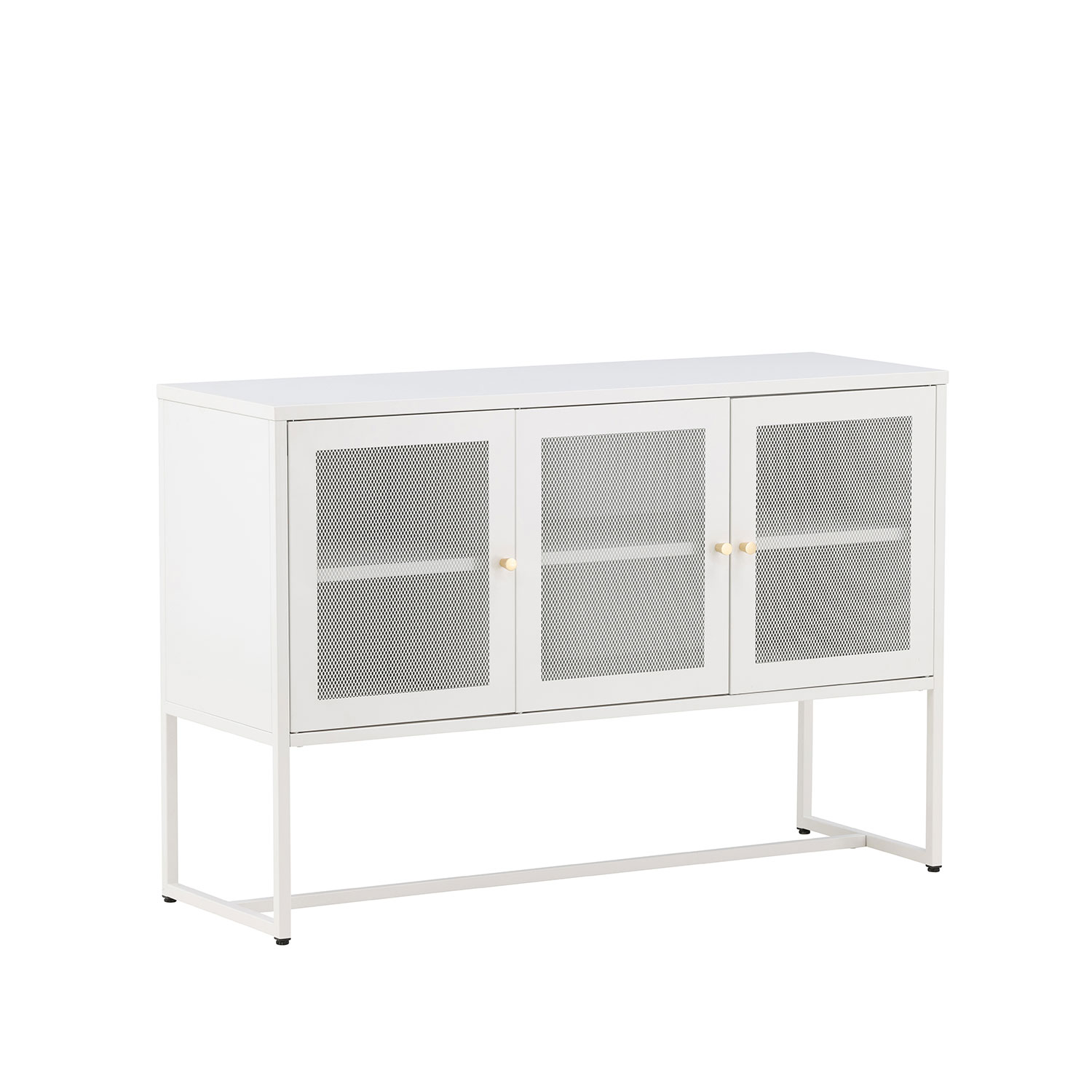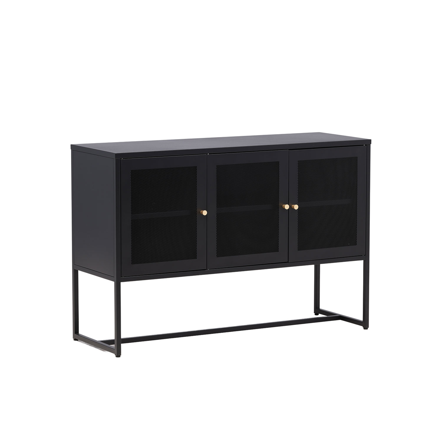 Förvaringsskåp från Venture Home. Malla - ett modernt skåp i en tuff industriell design med läckra nätdörrar och ben tillverkade i pulverlackerad stål med två smarta hyllplan för avlastning. Skåpet lyfts upp av smala, höga ben som skapar en luftig känsla och underlättar även för dammsugaren.