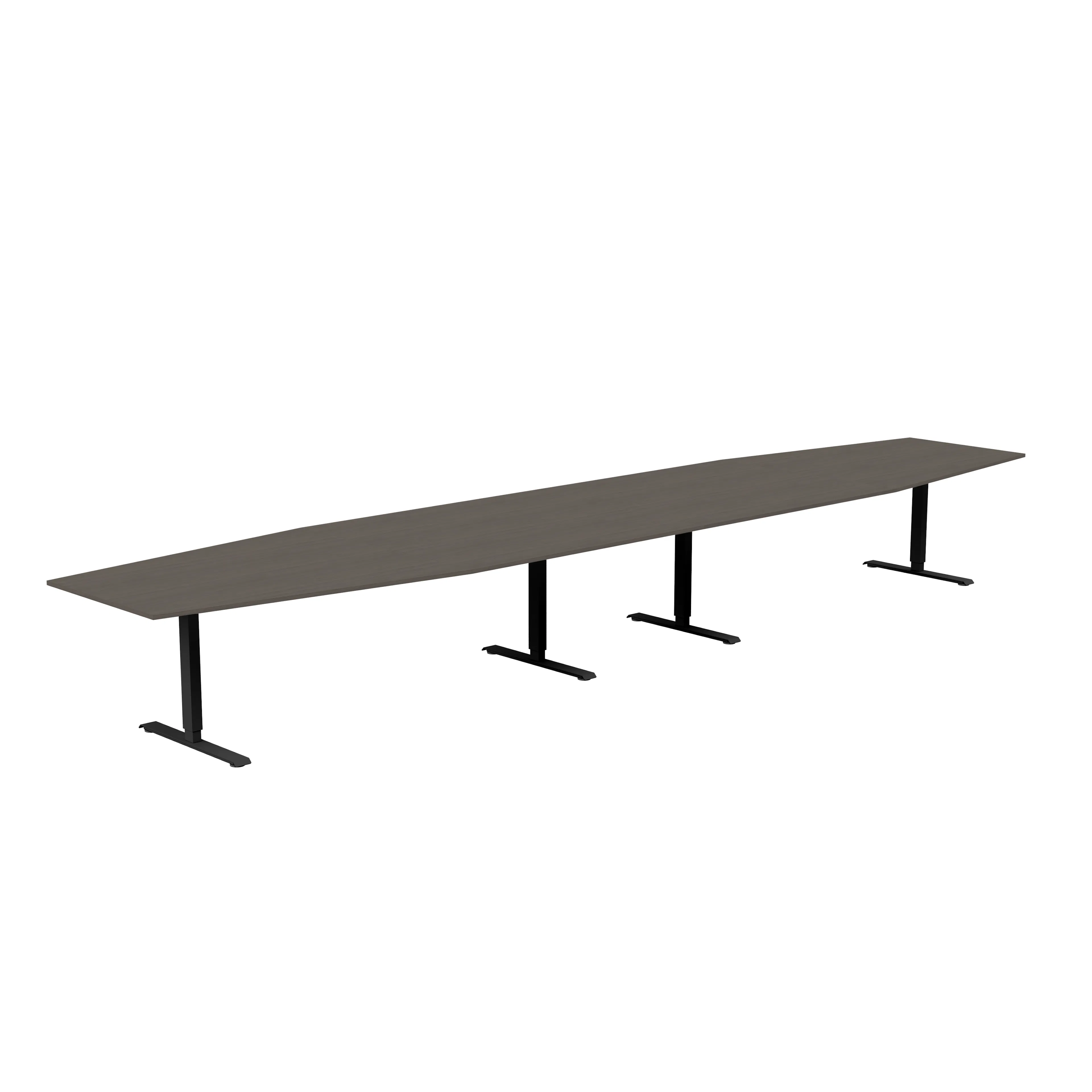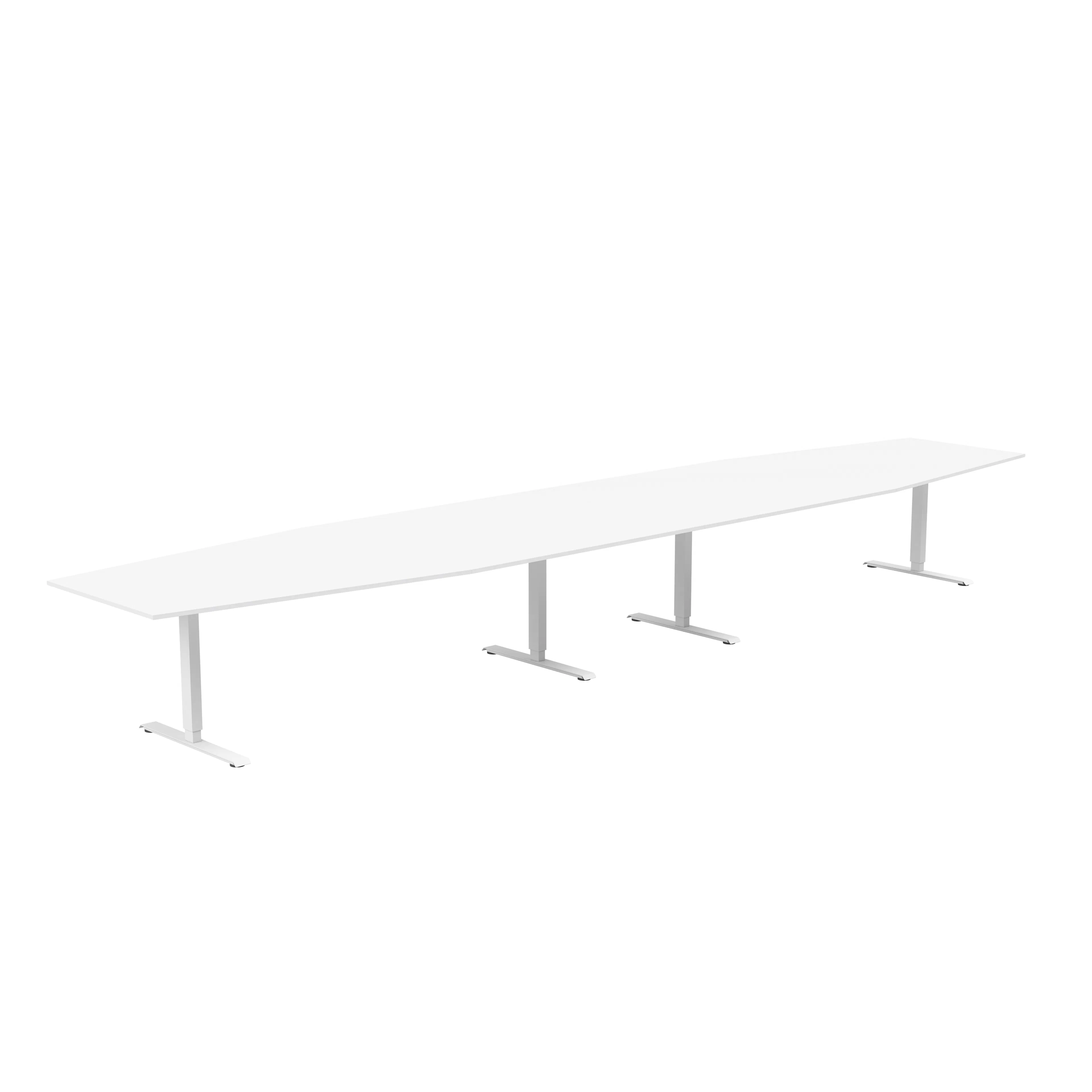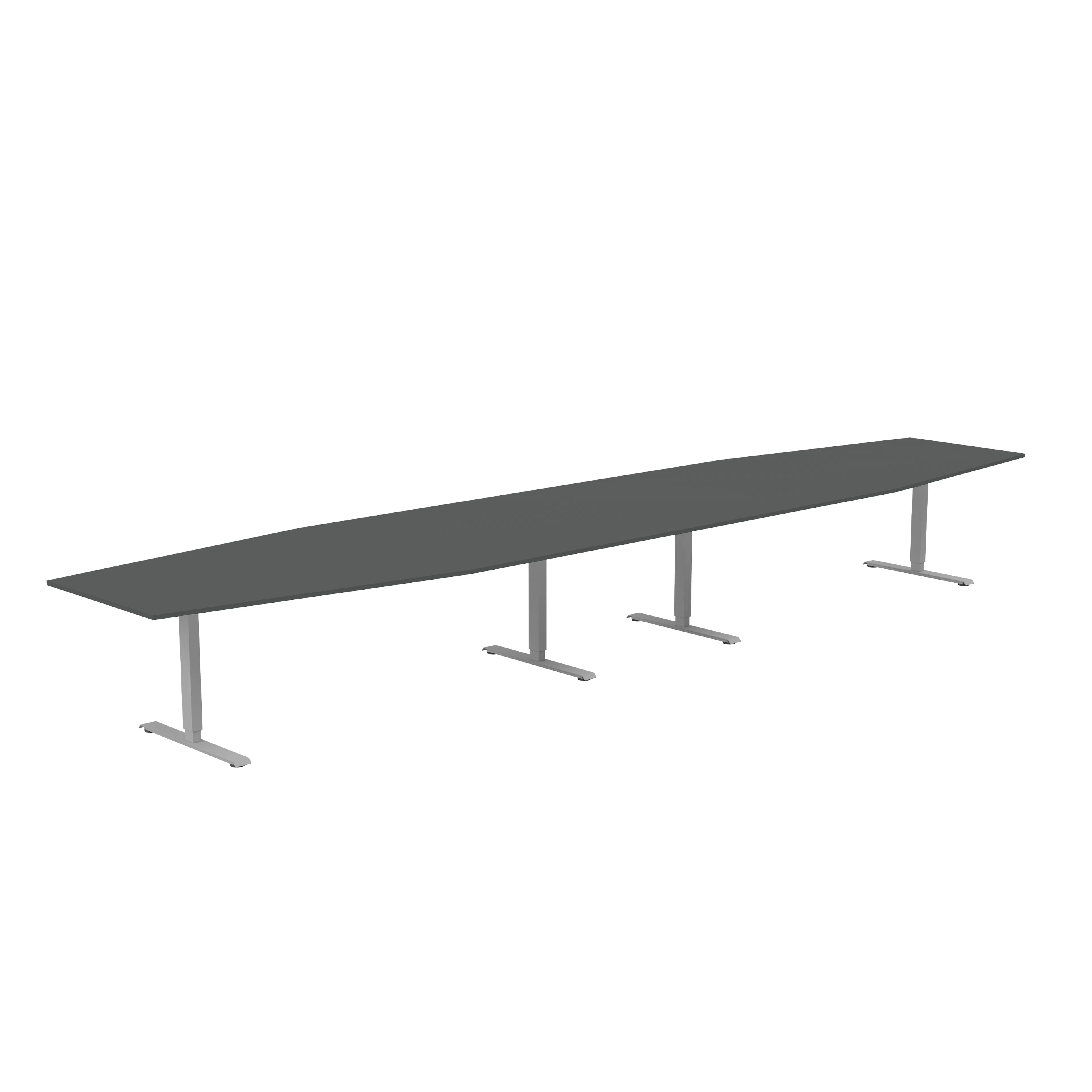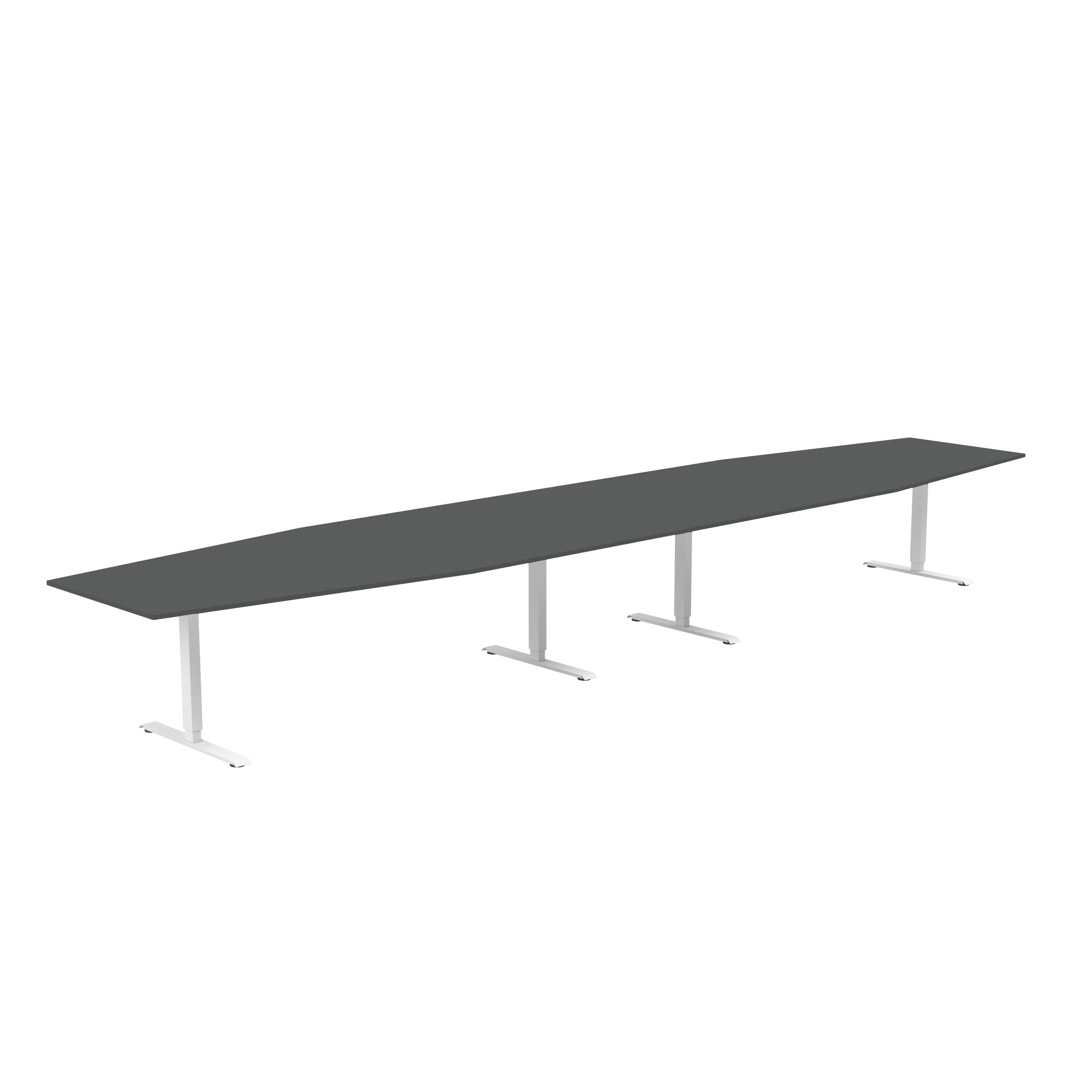 Båtformat konferensbord för cirka 18 personer. Bordet har en stilren design med rektangulärt T-stativ och finns med flera sorters bordsskivor och i tre stativfärger. Bordshöjden kan ställas in manuellt så arbetshöjden kan justeras om det behövs.