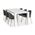 Matgrupp Cibus med 6 Felipe Stolar Sammet från In Living är en elegant matgrupp med ett vitt bord och sex sammetsstolar.