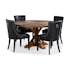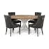 Matgrupp Lyon 150 cm Rund med 4 Tuva Fåtölj från In Living är ett robust, runt bord med fyra stoppade stolar.