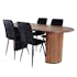 Matgrupp Bianca från Venture Home. Med ett ovalt matbord i valnötsfärgad MDF med faner med valnötsfärgade samt svarta bordsben i trä och MDF. Matchas med 4 st Walerina matstolar med svarta stolsben i järn och svarta sitsar i sammet.