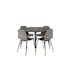 Matgrupp Dipp Rund med 4 Arctic Stolar från Venture Home är en matgrupp med ett stilrent, runt matbord i svart MDF med svarta bordsben i metall. Det medföljer fyra matstolar med svarta stolsben i metall och sitsar i plast.