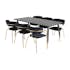 Matgrupp Dipp med 6 Arrow Stolar Sammet från Venture Home är en stilren matgrupp med ett rektangulärt matbord med en stomme och ben i svart pulverlackerad metall samt med en bordsskiva i svart fanér med en kärna i MDF. Det medföljer sex karmstolar med stomme, ben samt integrerade armstöd i metall. Rundad rygg och sits i stoppat sammetstyg. Lättare montering krävs.