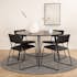Matgrupp Dipp, med ett runt matbord i svart MDF med svarta bordsben i metall.