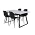 Matgrupp Estelle 140 med 4 Pop Stolar från Venture Home är en stilren matgrupp med ett rektangulärt matbord i modern design med underrede i svart pulverlackerad metall med en bordsskiva i marmor. Det medföljer fyra matstolar i modern design med ben i svart pulverlackerad metall. Skålformad rundad rygg och sits i helgjuten plast. Lättare montering krävs.