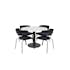 Matgrupp Estelle med 4 Aris Stolar Sammet från Venture Home är en elegant matgrupp med ett runt matbord i modern design med trumpetfot i pulverlackerad metall med en bordsskiva i marmor. Det medföljer fyra karmstolar med stomme, ben samt integrerade armstöd i svart pulverlackerad metall. Stolarna har en rundad rygg och sits i stoppat sammetstyg. Lättare montering krävs.