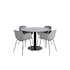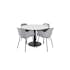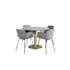 Matgrupp Estelle med 4 Colombine Stolar från Venture Home är en stilren matgrupp med ett runt matbord i modern design med trumpetfot i pulverlackerad metall med en bordsskiva i marmor. Det medföljer fyra matstolar med en stomme och ben i pulverlackerad metall. Stolarna har en rygg och sits samt integrerade armstöd i plast. Stolarna levereras med en grå, tunn sittdyna. Lättare montering krävs.