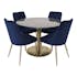 Matgrupp Estelle Rund med 4 Vera Stolar Sammet från Venture Home är en modern matgrupp med ett marmorbord och fyra stolar i sammet.