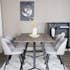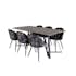 Matgrupp Madde med 6 Valentina Stolar Polyestertyg från Venture Home är en modern matgrupp med ett matbord i MDF med svarta bordsben i metall. Det medföljer sex matstolar med en helklädd design, ben i svart pulverlackerad metall samt rundad rygg och sits i polyestertyg. Rygg och sits har mjuk stoppning. Lättare montering krävs.