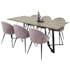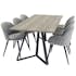 Matgrupp Madde från Venture Home. Matbord i grå MDF med svarta bordsben i metall. Matchas med 6 st Valentina matstolar med stolsits i sammet och svarta stolsben i metall.