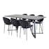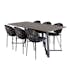 Matgrupp Madde med 6 Valor Stolar Polyestertyg från Venture Home är en modern matgrupp med ett matbord i MDF med svarta bordsben i metall. Det medföljer sex matstolar med svarta stolsben i metall och sitsar i polyester.