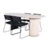 Matgrupp Bianca, med ett ovalt matbord i MDF med faner med samt bordsben i trä och MDF. Matchas med 4 st Kungshamn matstolar med sitsar i sammet.