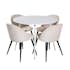 Matgrupp Plake med 4 Valentina Stolar Sammet Runt från Venture Home är en elegant matgrupp med ett runt matbord med ben i metall och en bordsskiva av MDF. Det medföljer fyra matstolar med svarta stolsben i metall och sitsar i sammet.