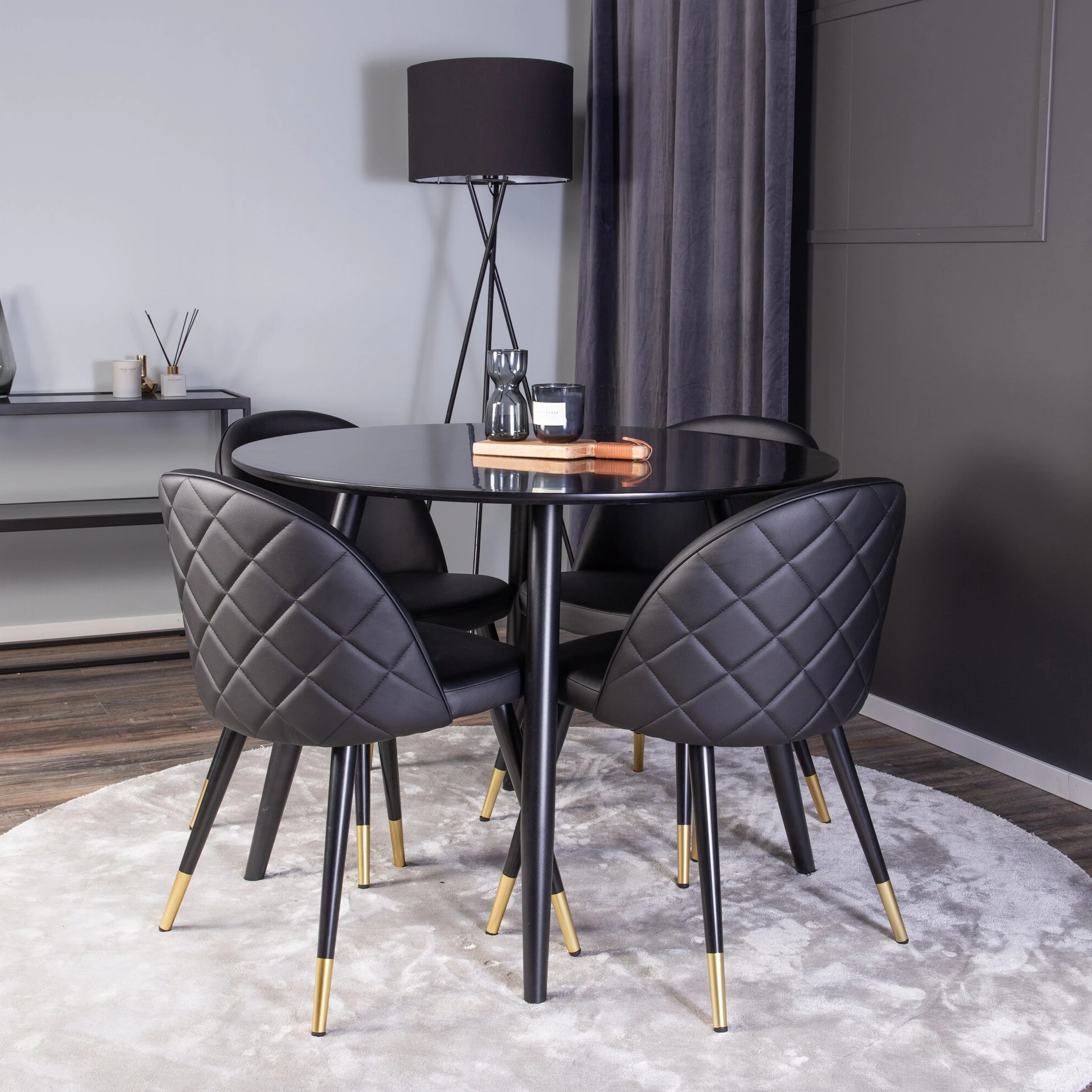 En modern matgrupp i smickrande design! Matbord Plaza kombineras med de eleganta matstolarna i serien Velvet. Låt den här vackert matchade matgruppen med konstnärlig känsla bli en naturlig samlingsplats i ditt hem.