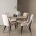 De fyra medföljande Leone-stolarna kompletterar bordet på ett utmärkt sätt. Dessa stolar är klädda i mjuk manchester, vilket ger en bekväm och inbjudande sittupplevelse. Manchester-tyget är känt för sin slitstyrka och komfort, vilket gör att du och dina gäster kan sitta bekvämt under långa måltider och samtal.