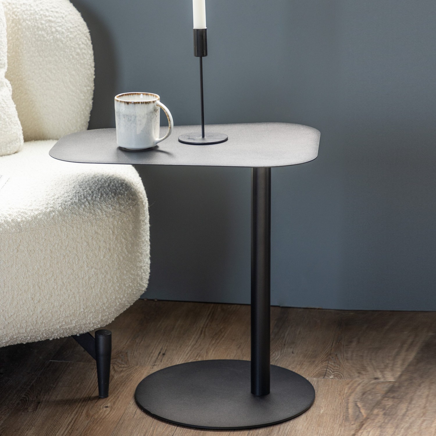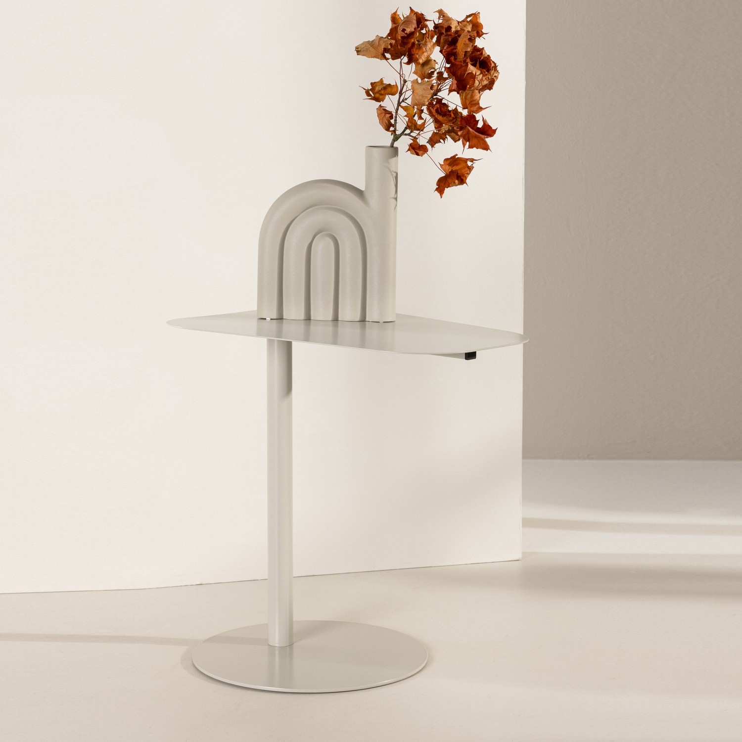 San Jose Sidobord kombinerar det bästa av skandinavisk design – en nätt och minimalistisk framtoning som tar sig uttryck i en smal stålfot. Den runda foten ger en solid bas och balans, medan den oregelbundet ovala toppskivan ger en modern och unik touch till bordet.