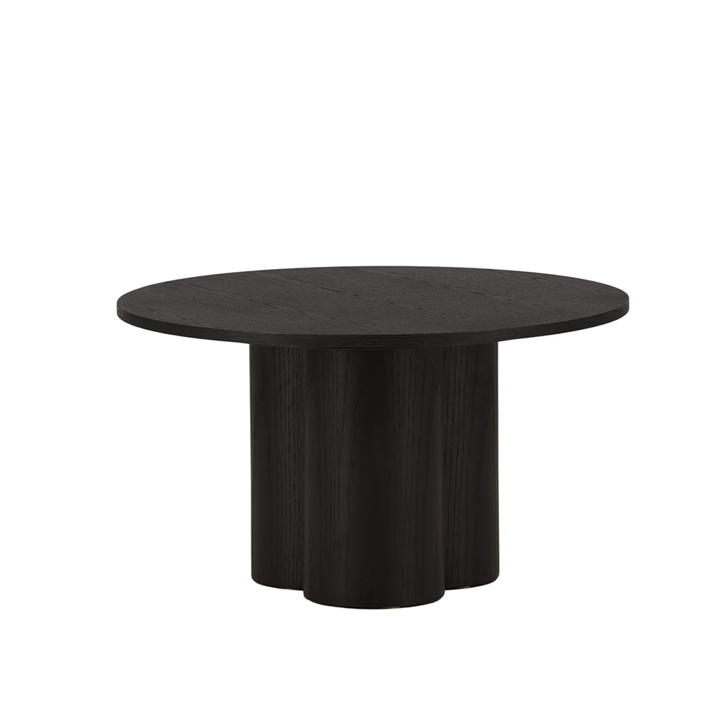 Soffbordet är tillverkad i MDF med faner och har en cylinderformad uppbyggnad vilket skapar en läcker dimension till bordet.