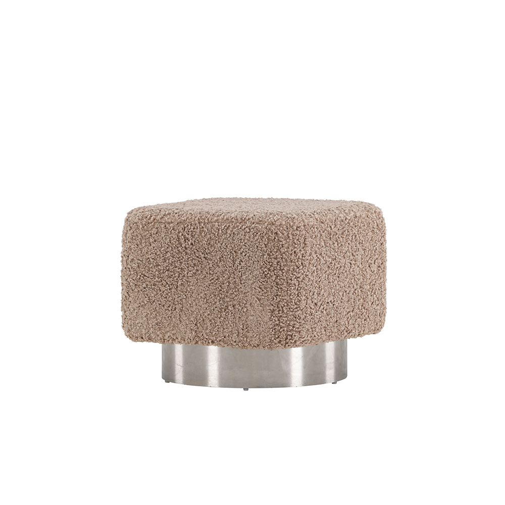 Newton är en underbar puff i teddy som kommer att skapa en mysig atmosfär i ditt rum. Det mjuka och gosiga materialet gör den perfekt att sitta på och njuta av avkopplande stunder. Puffens stomme i silver ger den en unik och modern touch som verkligen sticker ut.