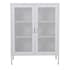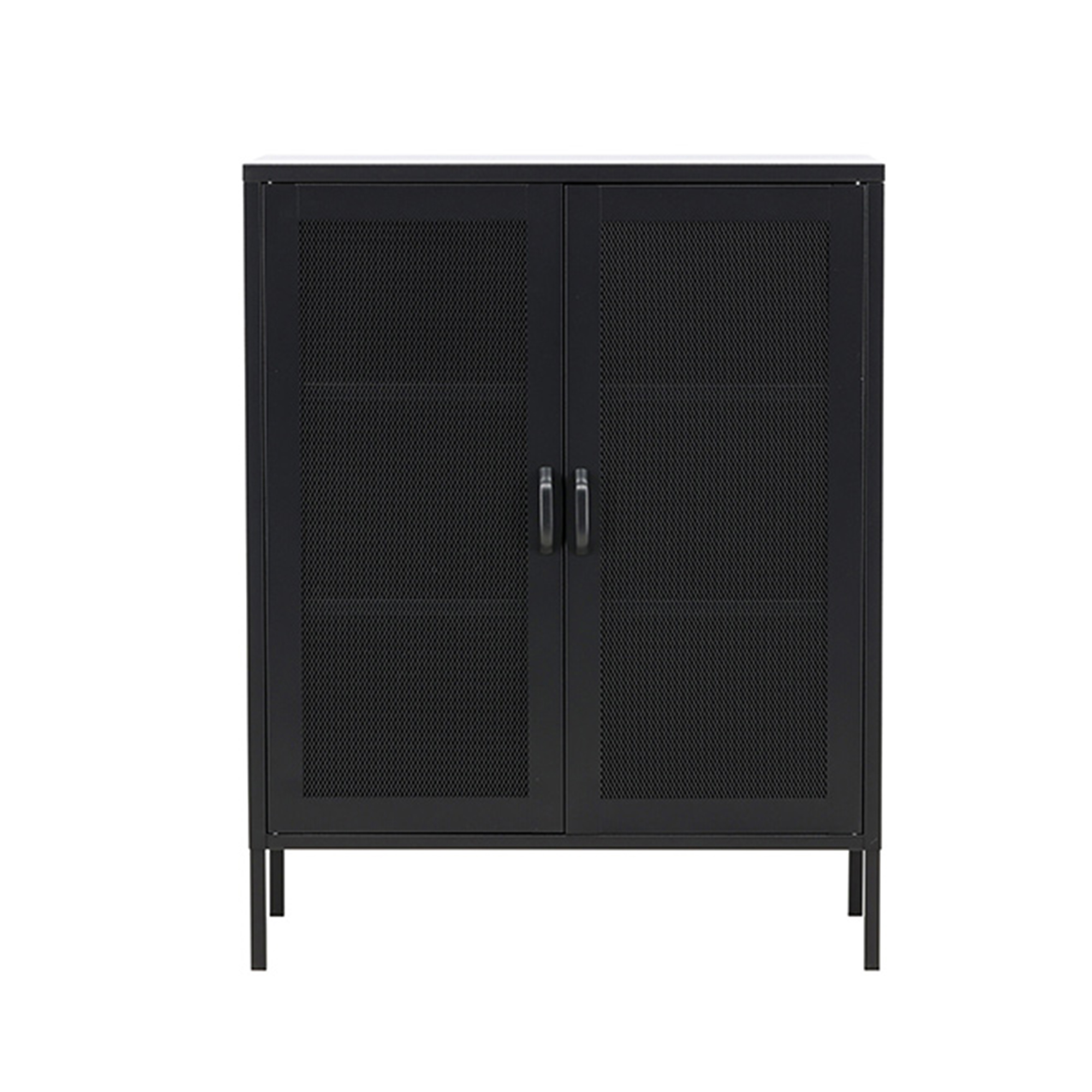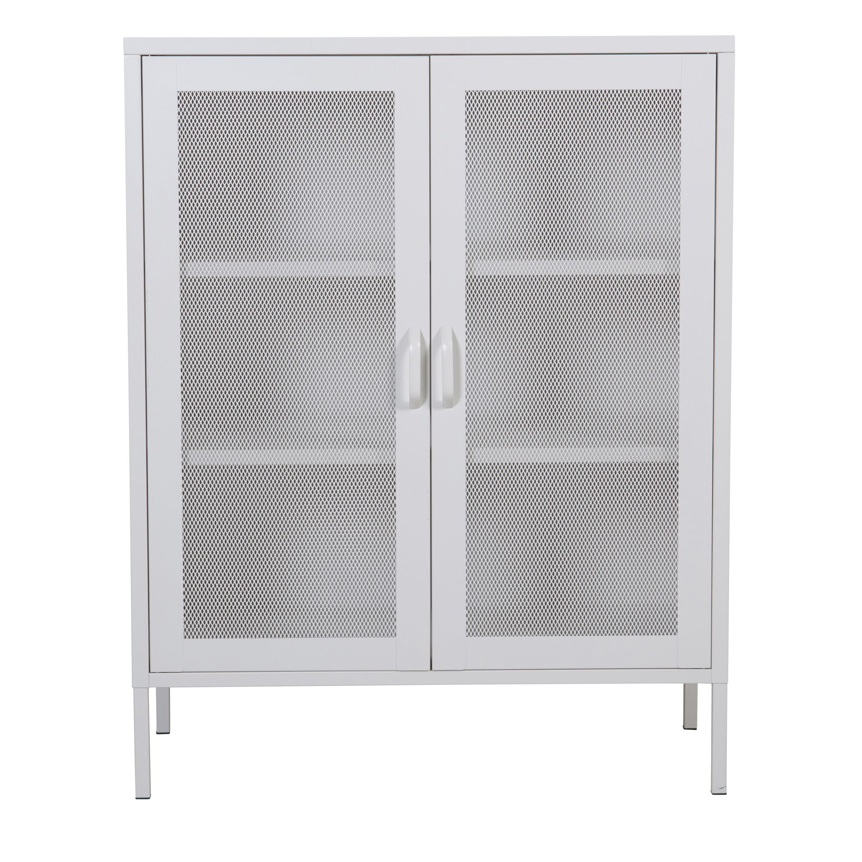 Misha från Venture Home är en bokhylla i pulverlackerat stål med två dörrar i dekorativt nät och två hyllplan.