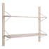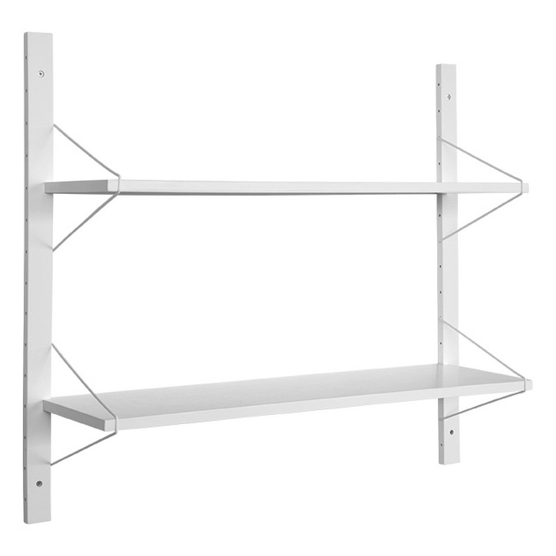I det här utförandet har Elma vitpigmenterade hyllplan och konsoler i furu och svarta metallstag.