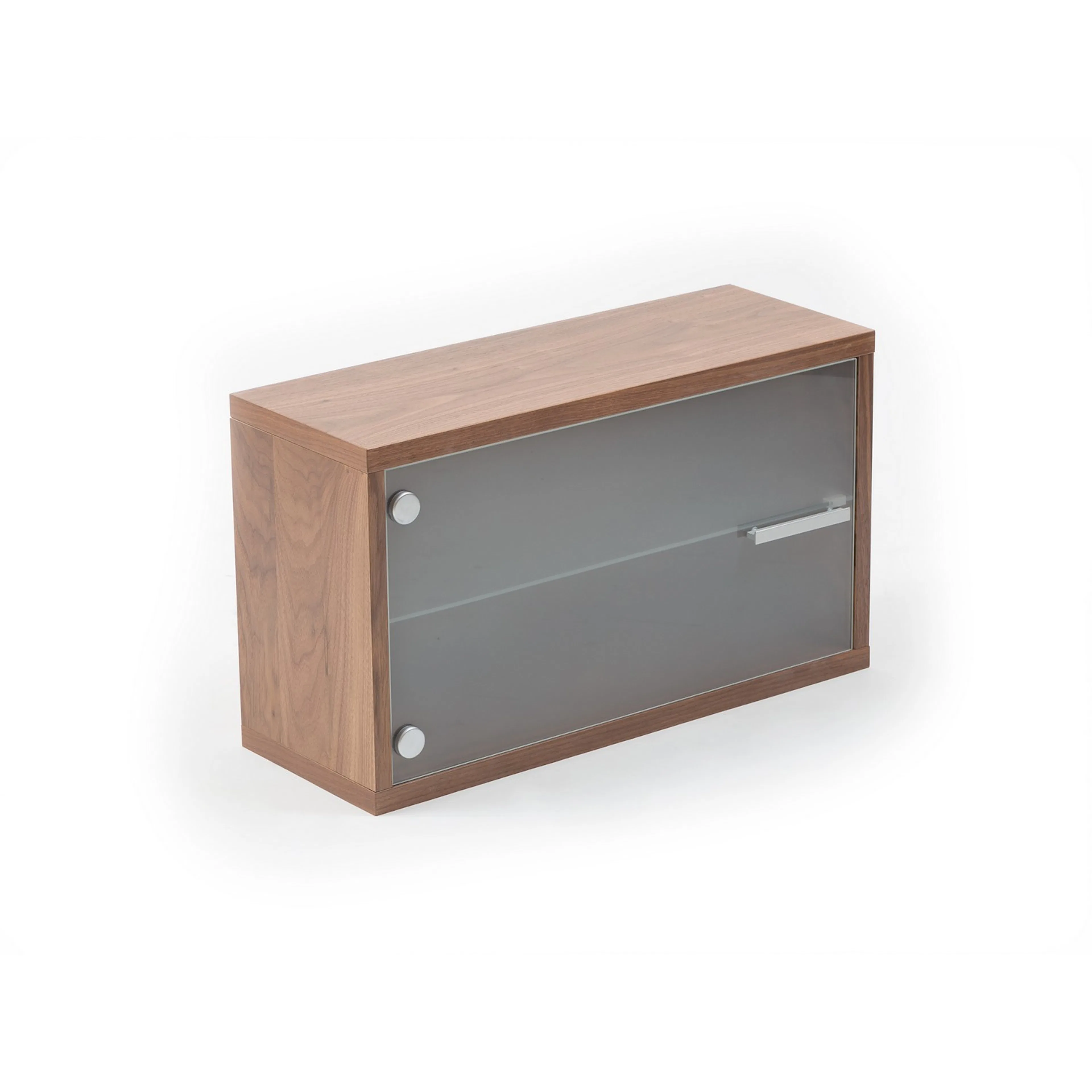 Elsa väggvitrin har även en hylla i tillhörande frostat glas, som kan placeras på valfri höjd, och därför ger dig flexibilitet för förvaring.