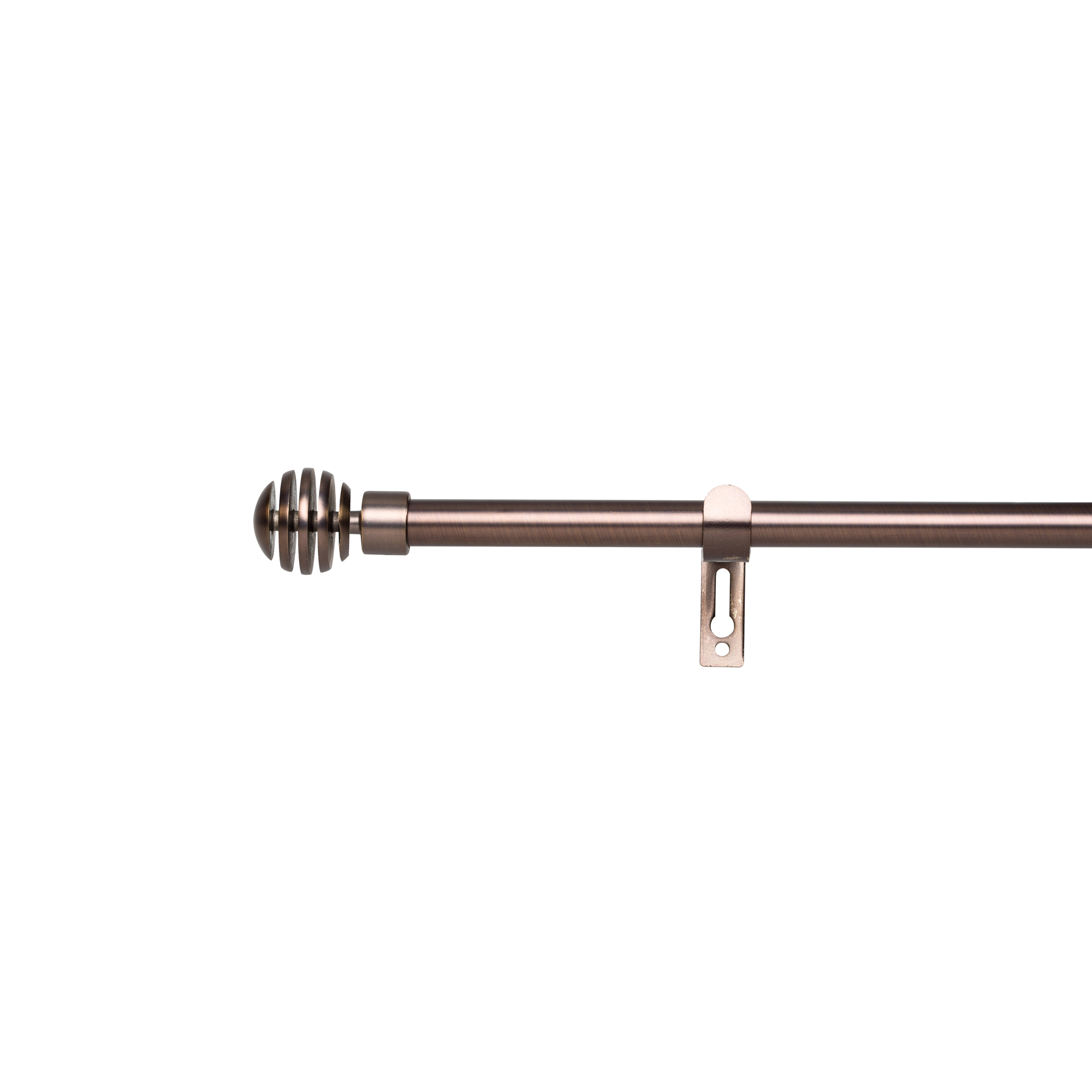 Dekorativt gardinstångset innehållande stång, änddekorer och 2 hållare. Hållarna är reglerbara från 10-15 cm och monteras på vägg med plugg och skruv.