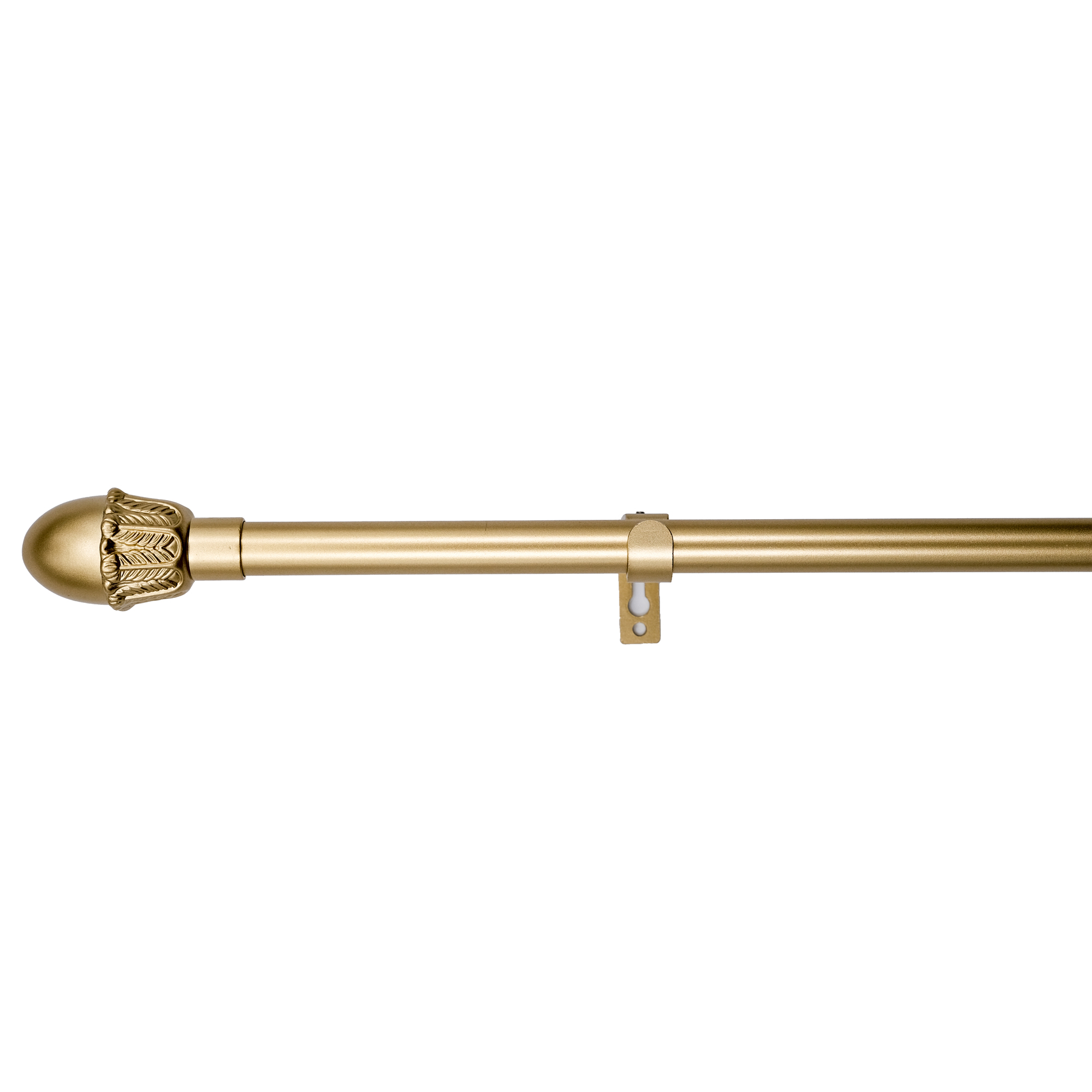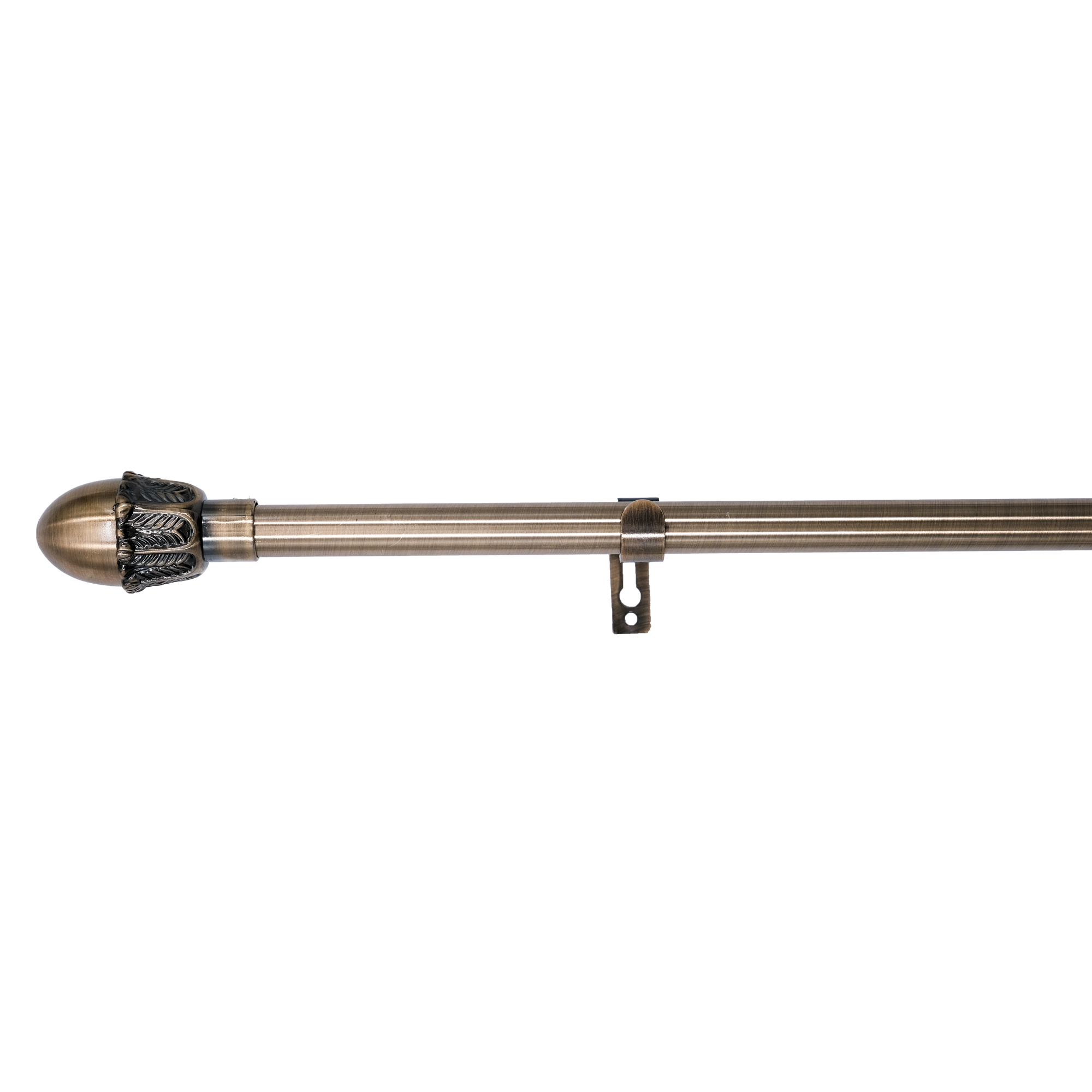 Dekorativt gardinstångset innehållande stång, änddekorer och hållare. Hållarna är reglerbara från 10-15 cm och monteras på vägg med plugg och skruv.