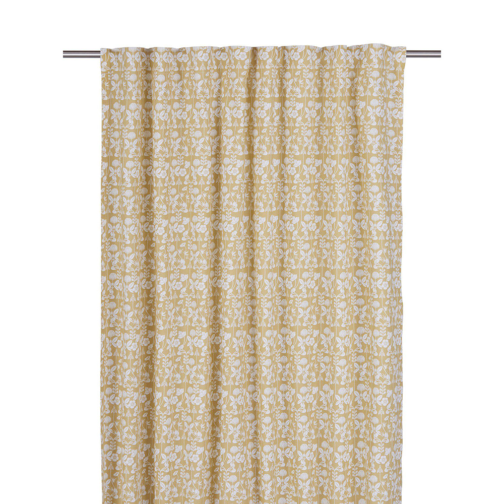 2-pack multibandslängder i bomull med tryckt mönster av Carl Larsson. Mönstret De mina kommer från försättningsbladet på några av Carl Larssons böcker, bland annat boken 'De mina'. Gardinen har multiband i ovankant, fållade långsidor och overlocksöm i nederkant. Använd snabbfållningsband för att få rätt längd på gardinen. Måttet på varje gardin är 140x280cm.