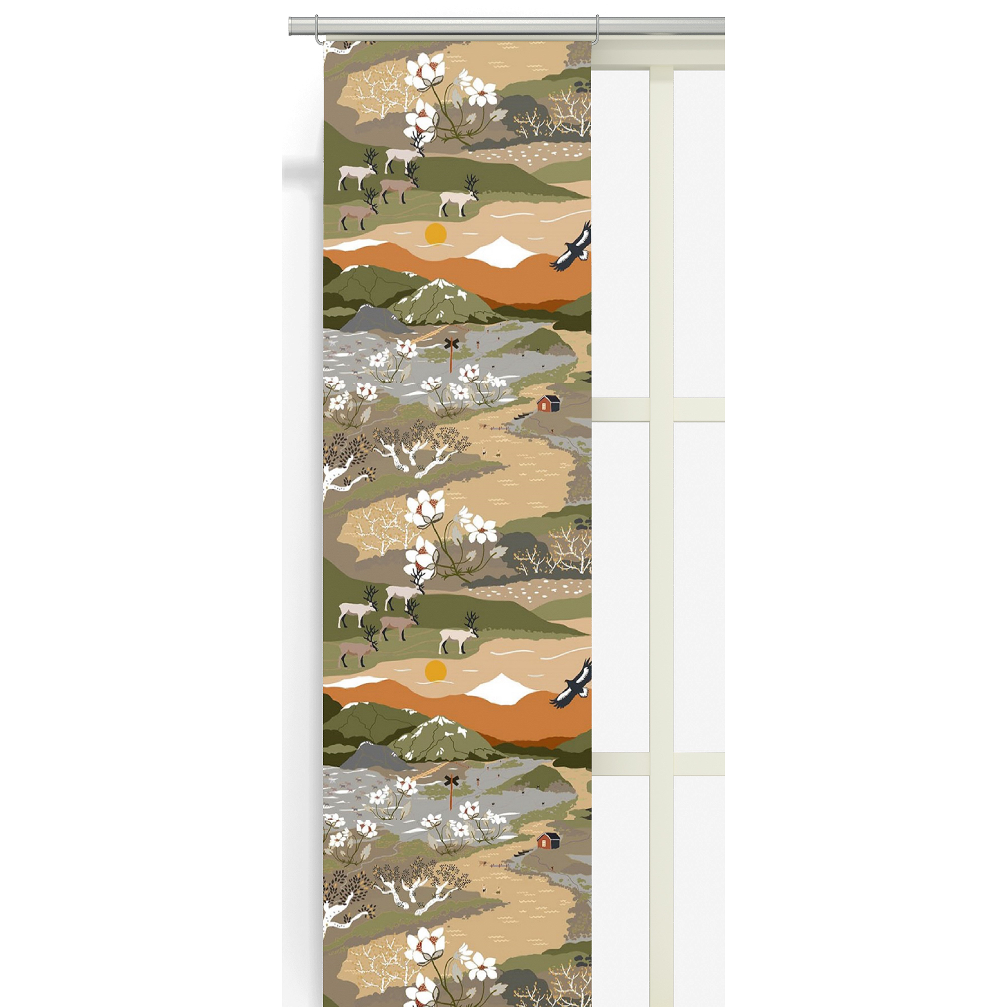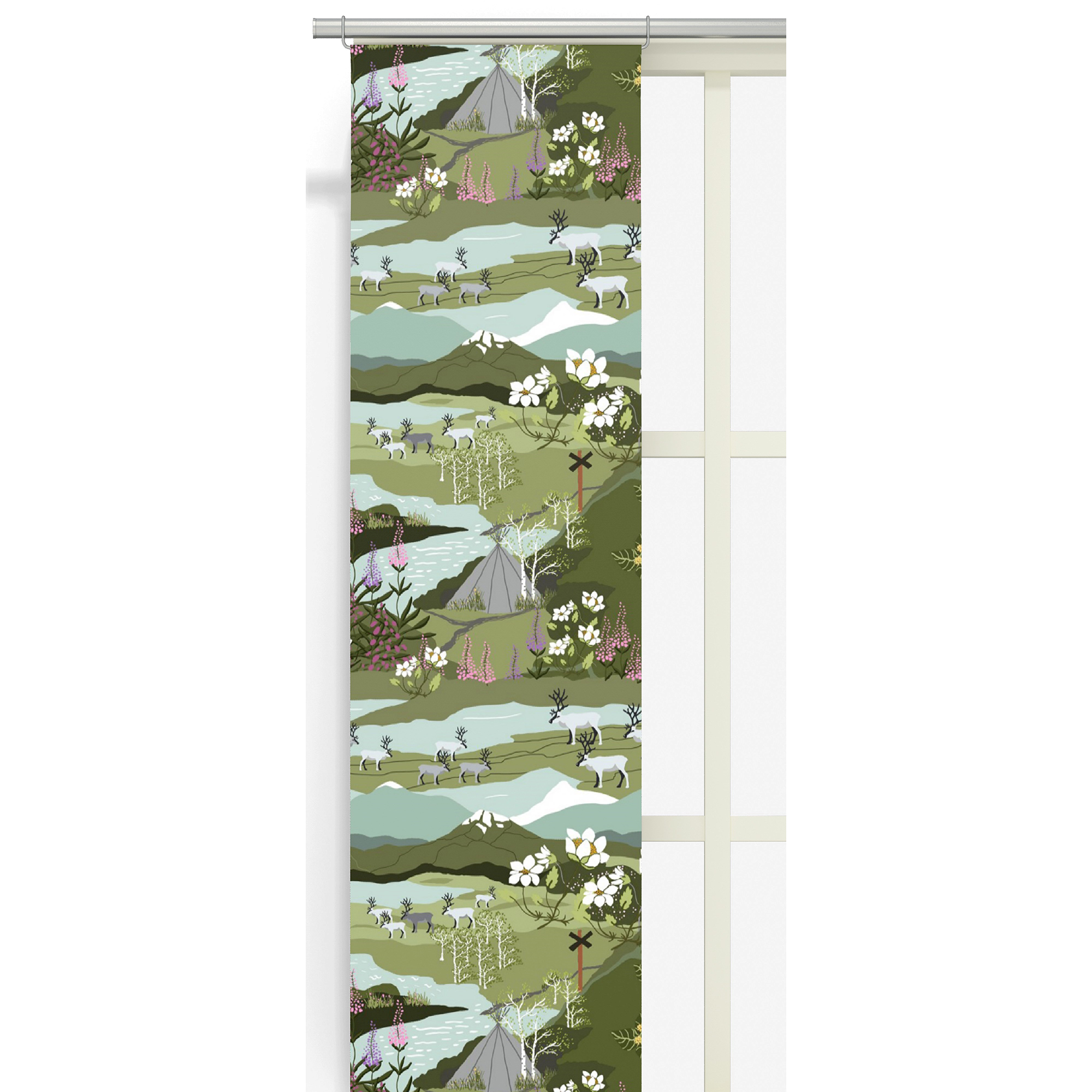 Panellängd från Arvidssons Textil. Svenskdesignat mönster med motiv av härliga fjällandskap med renar och solnedgången. Tillverkad i bomull. Design av Louise Videlyck.