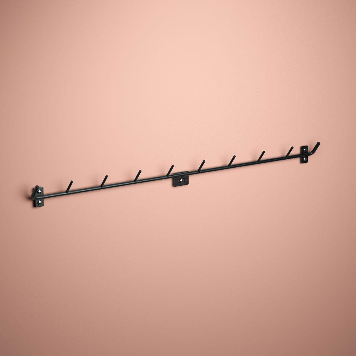 Klädhängare Lundbergs Hedda är en enkel, funktionell och stilren vägghängd klädhängare i pulverlackerad metall.