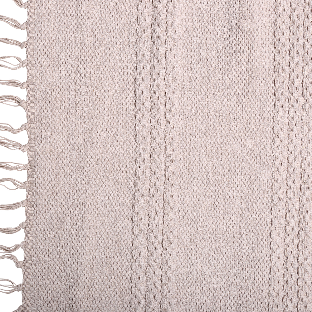 Matta Nico i handvävd beige bomull med flätade detaljer ger en ombonad känsla till rummet.