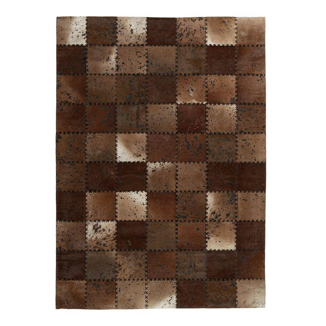 Tack vare det naturliga lädret är varje matta unik. Den intensiva färgningen och de naturliga läderområdena skapar en harmonisk helhetsbild. De enskilda, fyrkantiga läderbitarna bildar ett sammanhängande lappmönster.