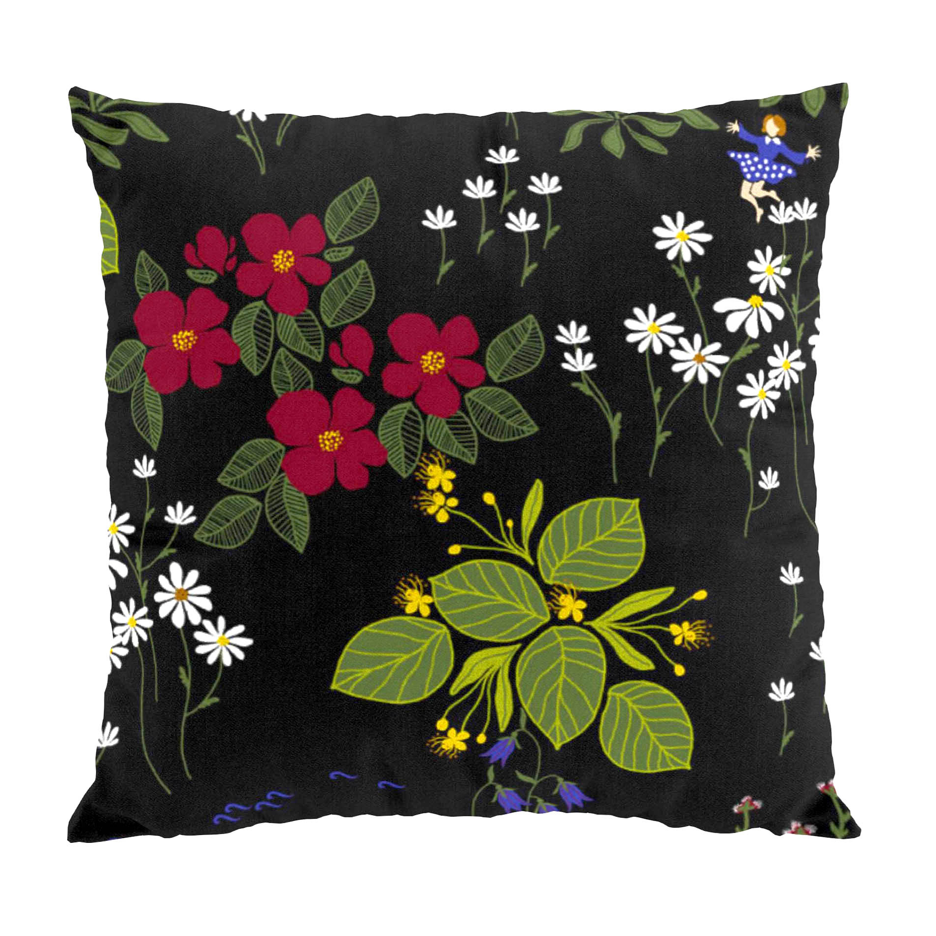 Kuddfodral Himlajorden från Arvidssons Textil. Svenskdesignat mönster med inspiration från Evert Tabues klassiska visor. Design av Louise Videlyck.