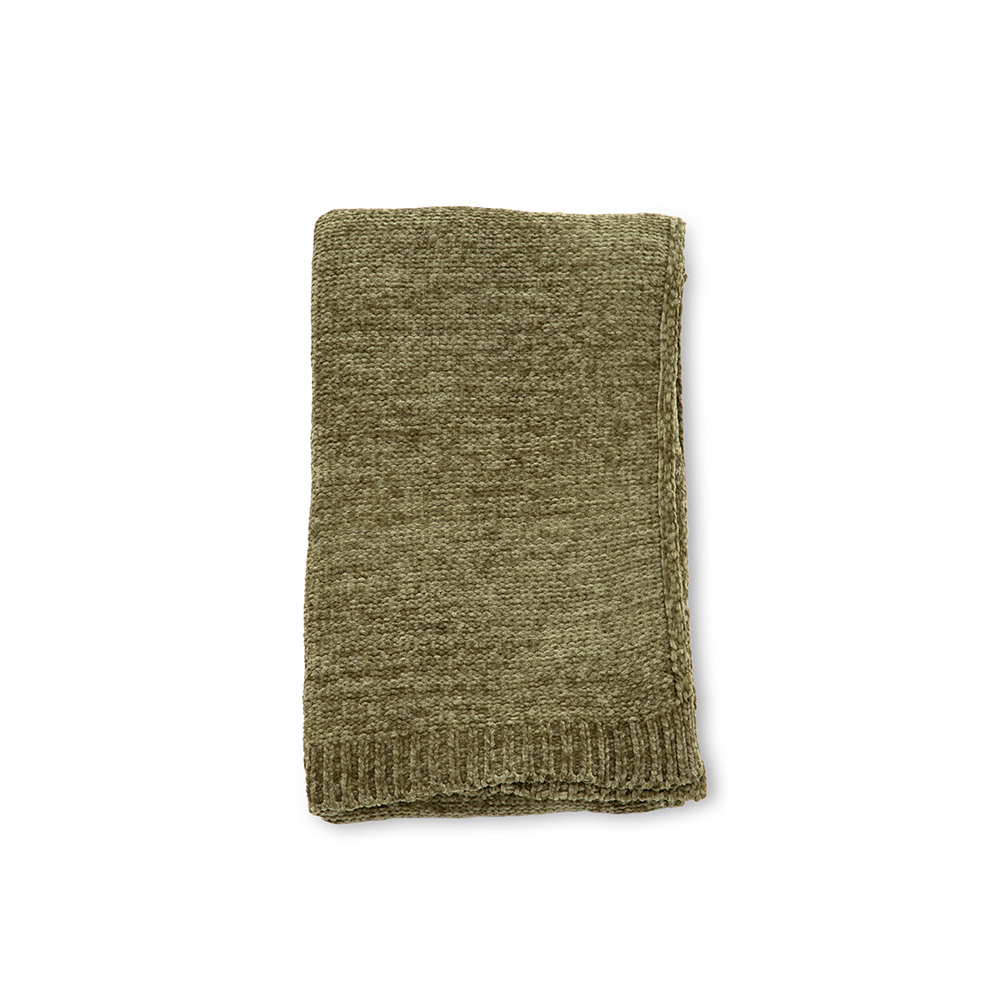 Mysig pläd i glansigt chenille och polyestermaterial.