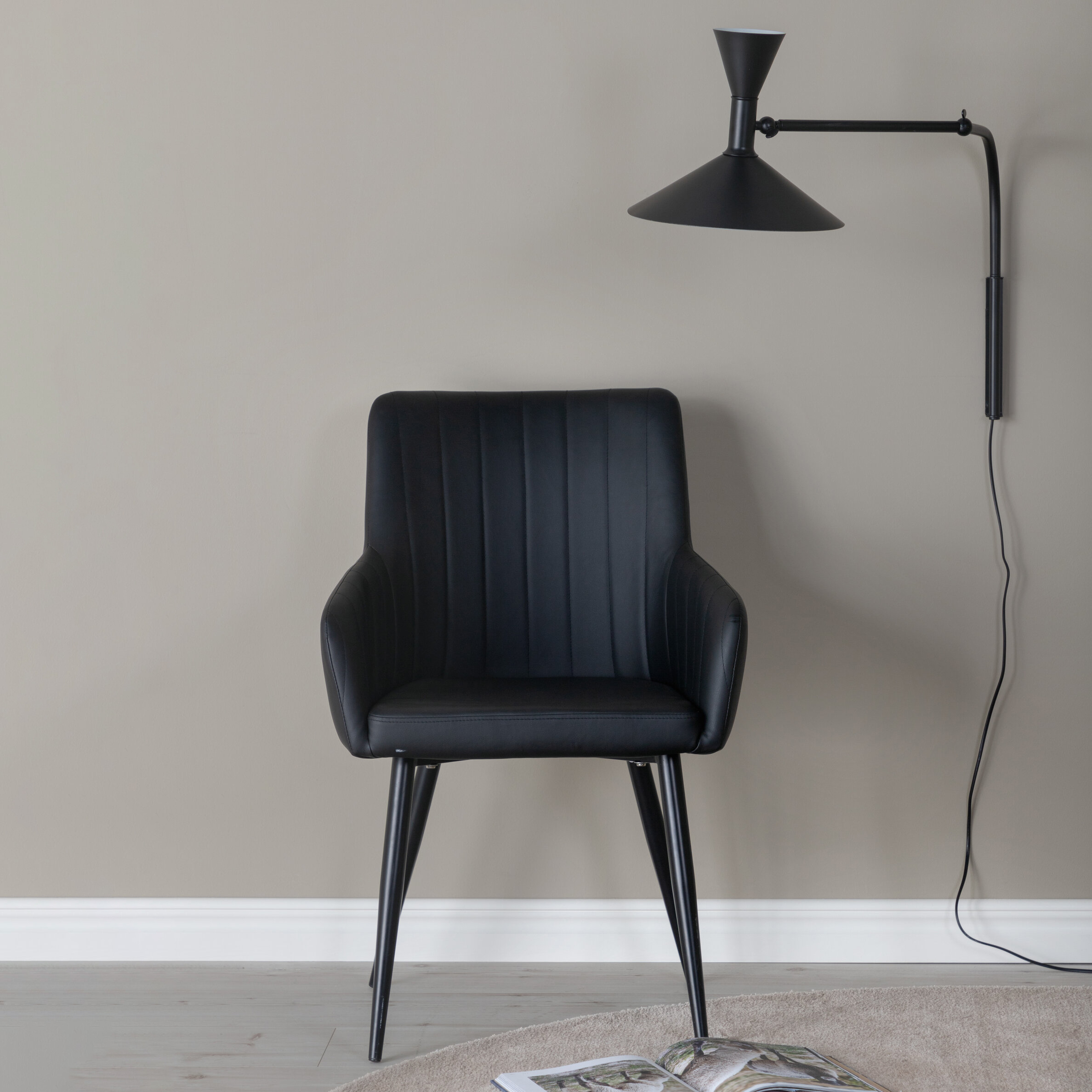 Venture Homes läckra matstol från serien Comfort i en tuff helklädd design med ben i pulverlackerad metall. Sitt bekvämt och bjud in till trivsamma måltider framöver!