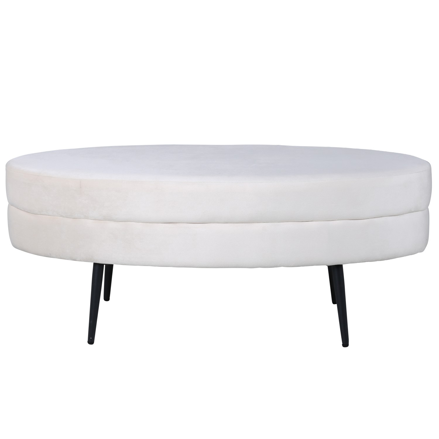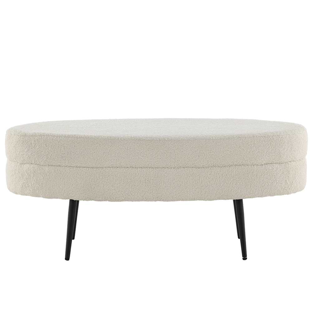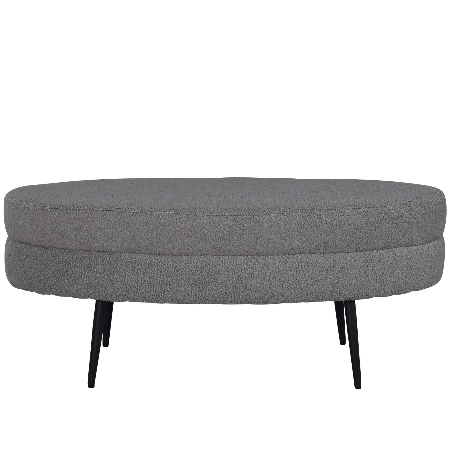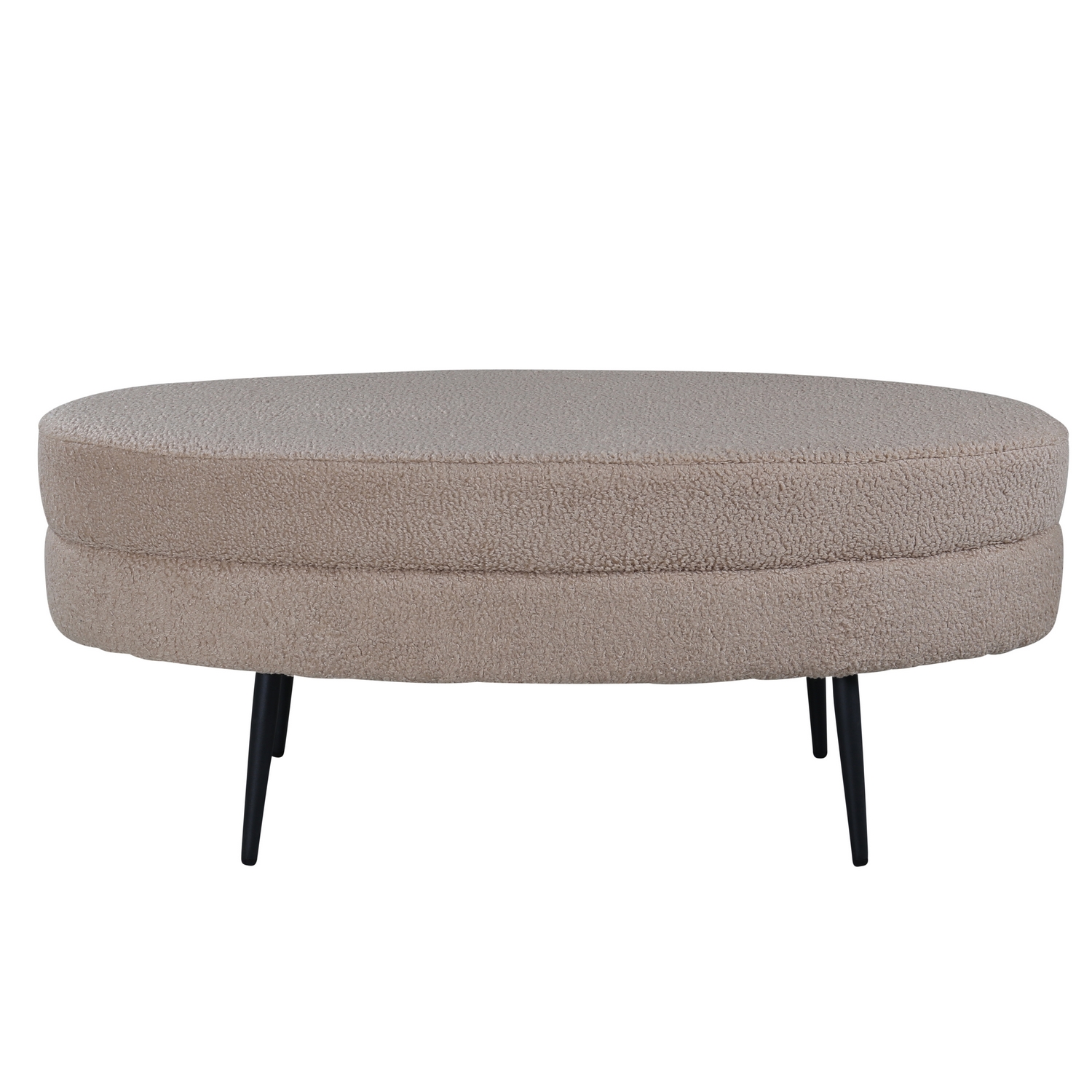I sin läckra kulör och trendiga teddytyg ger den ett modernt och stilrent intryck till rummet den placeras i. Sittpuffen har en oval utformning tillverkat av skum, bomullsfiber, tyg, och böjt trä. De lätt utsvängda benen är i svart stål och gör att möbeln känns lite mer luftig. Använd som en extra sittplats, fotpall eller avlastningsyta - den blir en läcker inredningsdetalj i flera rum.