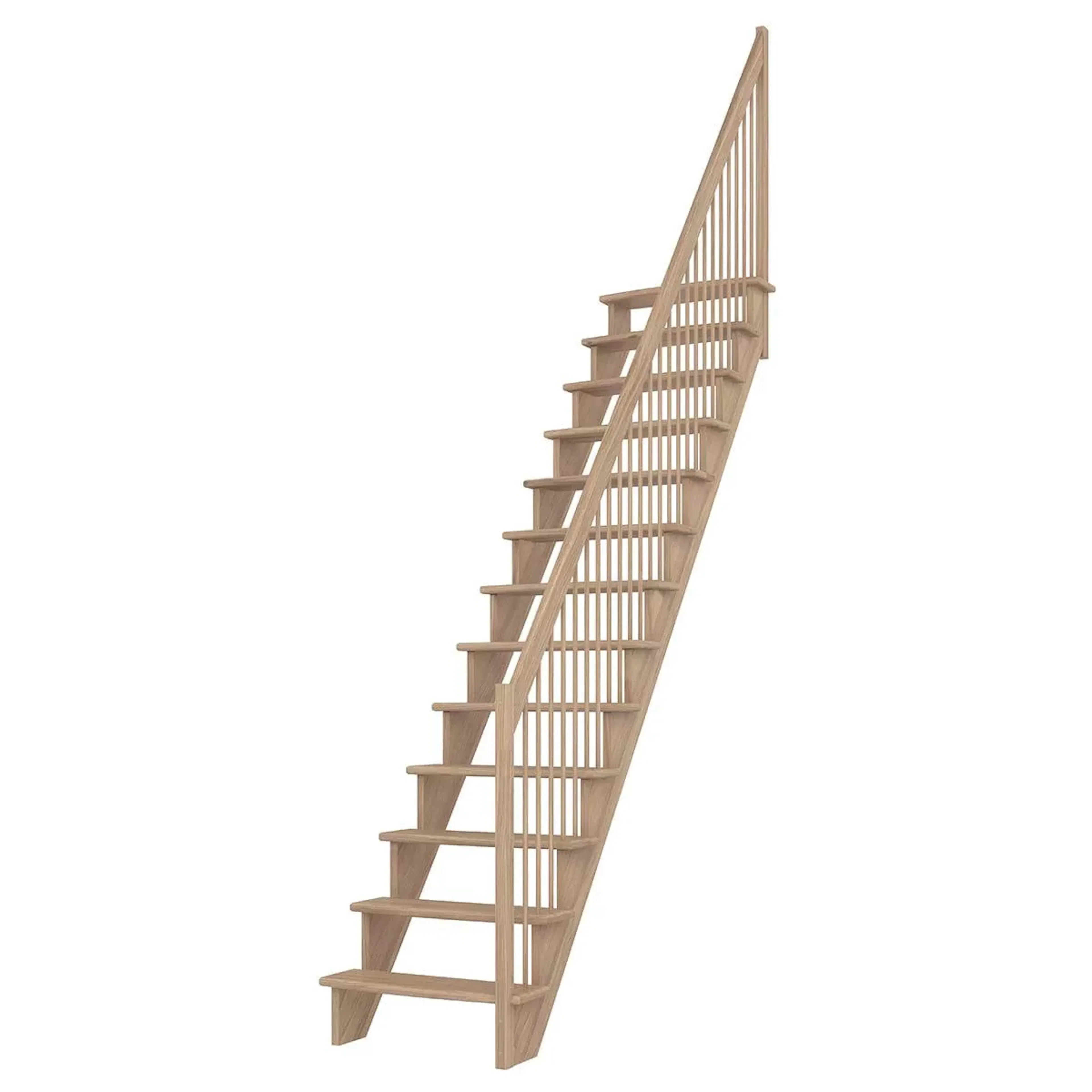 Lyon är en platsbesparande trappa från Dolle med träräcke. Trappan finns i rakt och 1/4 svängt utförande med val av sida för räcket. Trappan är tillverkad i massiv ek med 21 cm djupa och lätt rundade steg som ger en bekväm yta att gå på.